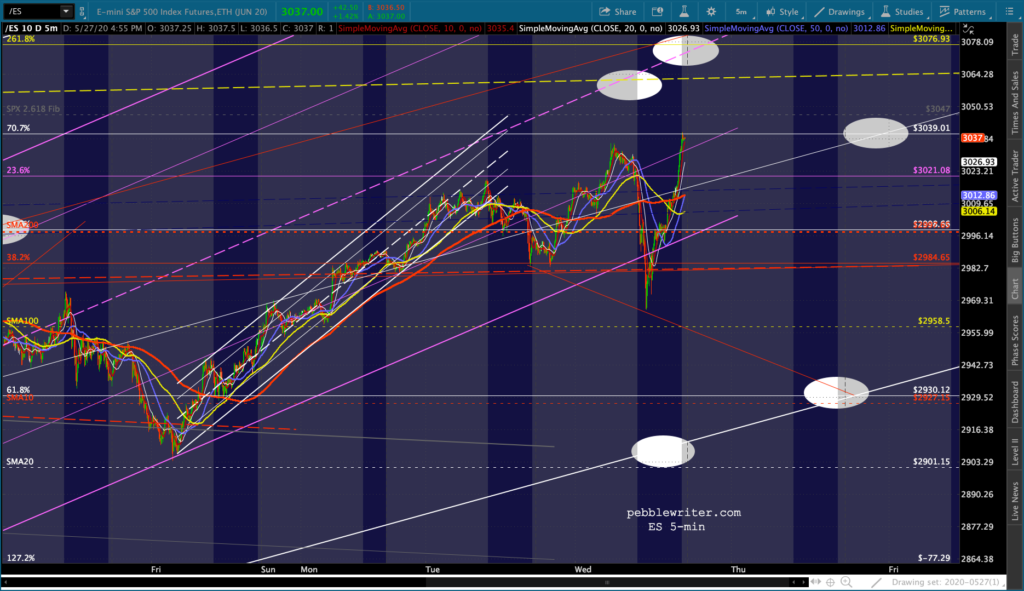 Another V-shaped recovery got ES and SPX back above their SMA200s by the close. In fact, both reentered their broken channels and tagged their next upside targets.