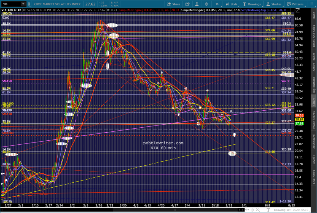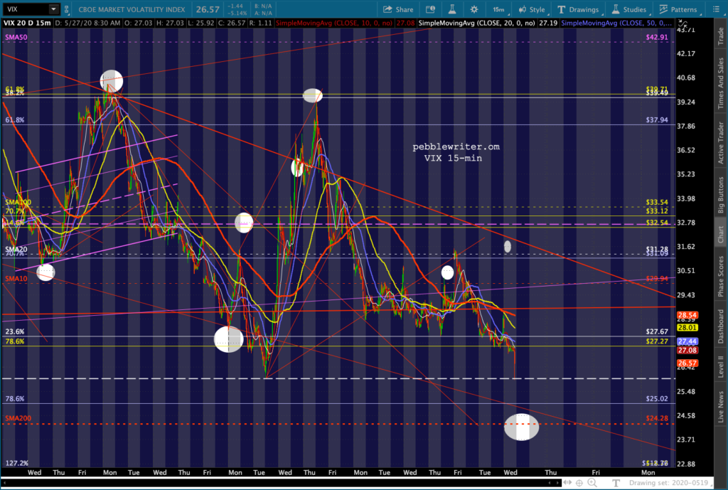 I need to be out of the office this afternoon. Watch out for a potential headfake orchestrated by VIX. It still appears as though we are heading lower or will soon.