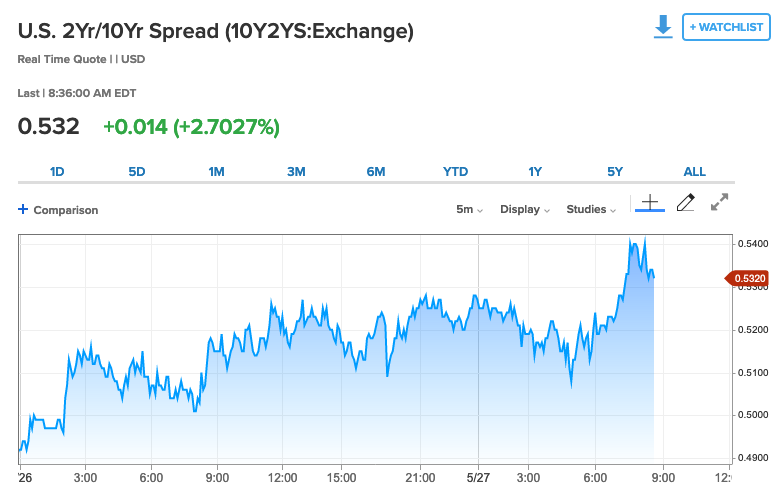 The 2s10s is slipping higher again. Will this be the time it finally breaks out or down?