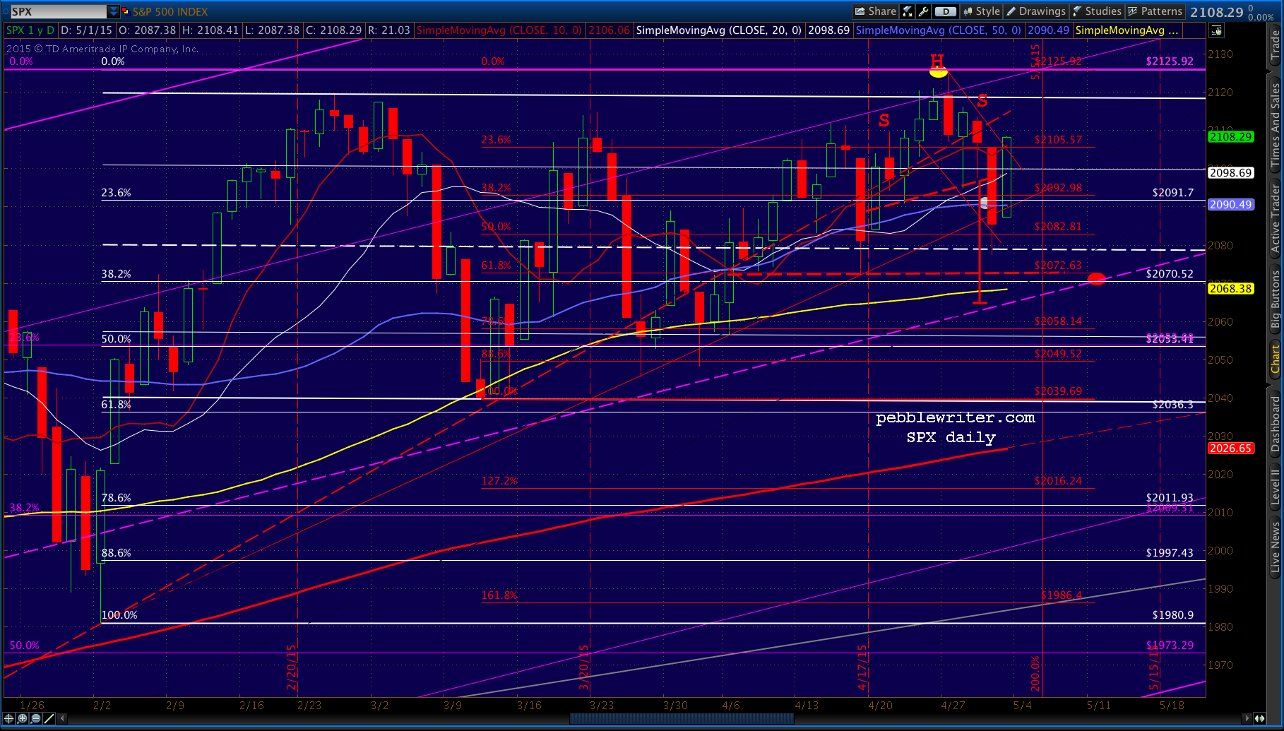 The eminis are up 5.75 primarily on the yen’s weakness and Friday’s algofest which saw SPX break through overhead trend line resistance and rise above the neckline of the H&S Pattern it completed the day before.