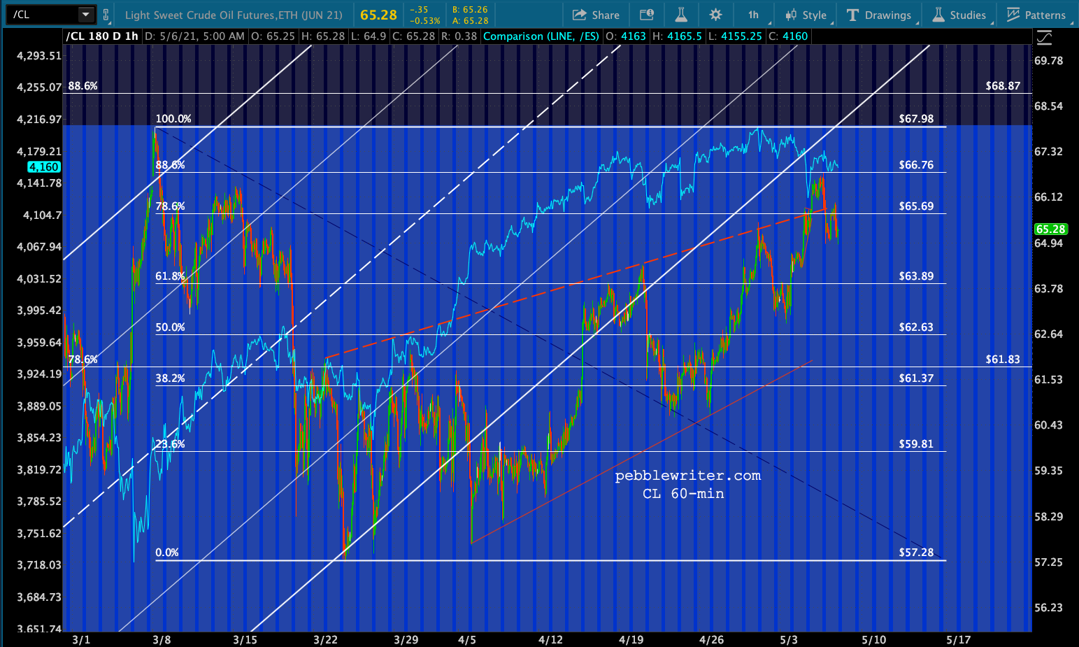 CL finally tagged its .886 on a very bullish inventory draw – then promptly reversed back below the TL it had broken above.