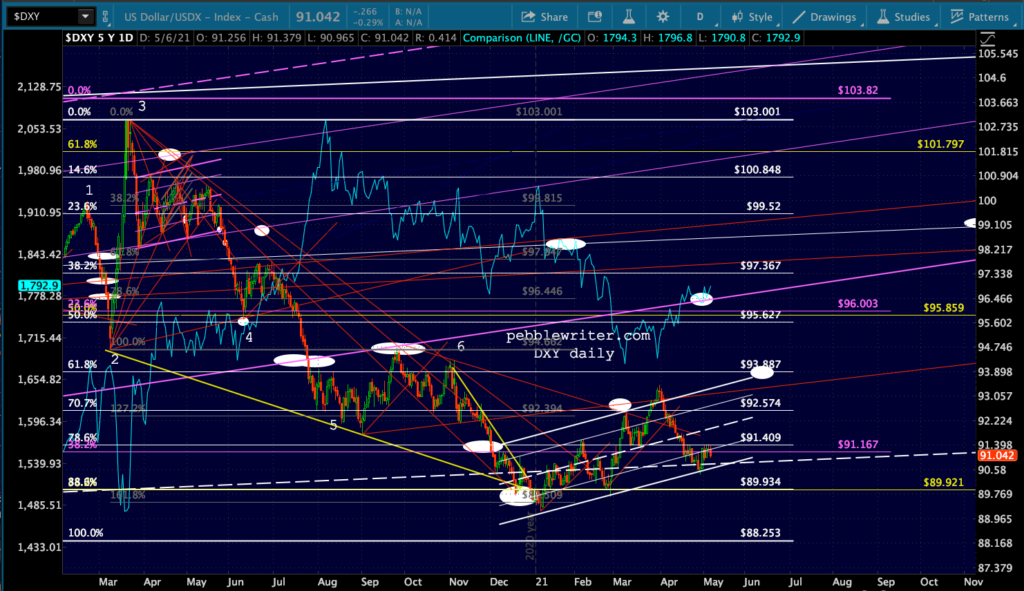 continued for members…Stocks are biding their time with the protection of the 1.618 “breakout”, still waiting for a breakdown which could come anywhere between on the open or a week from now. I continue to like the idea of a May 12 plunge on alarmingly high April CPI.