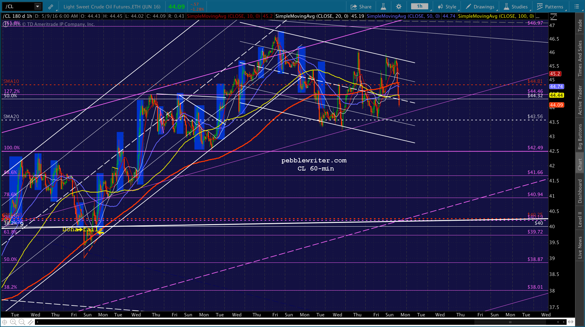 CL is off 1.28% at the moment, but has the purple channel .786 and SMA20 support just below. Should it drop through that support, it would certainly help SPX reach a lower low that it saw Friday.