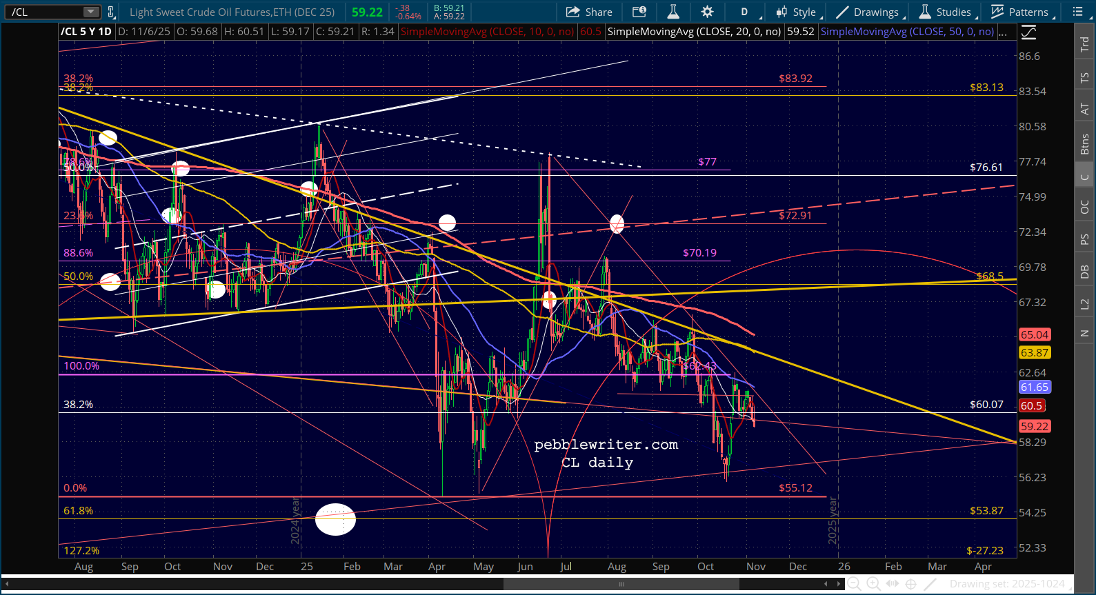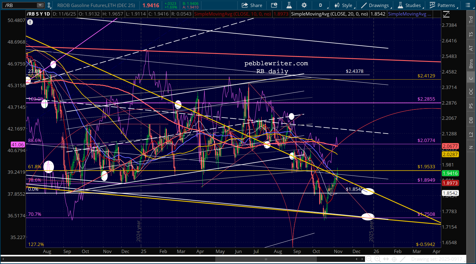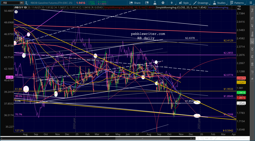 CL is headed lower to help slow/reverse the rise in the 10Y. RB is too, but after another near breakout.