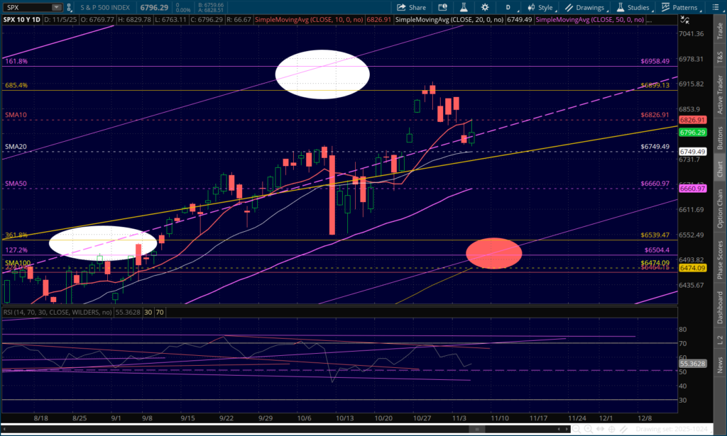 SPX’s, on the other hand, will reach its in November, with another opportunity that matches the yellow midline in Feb 2026.