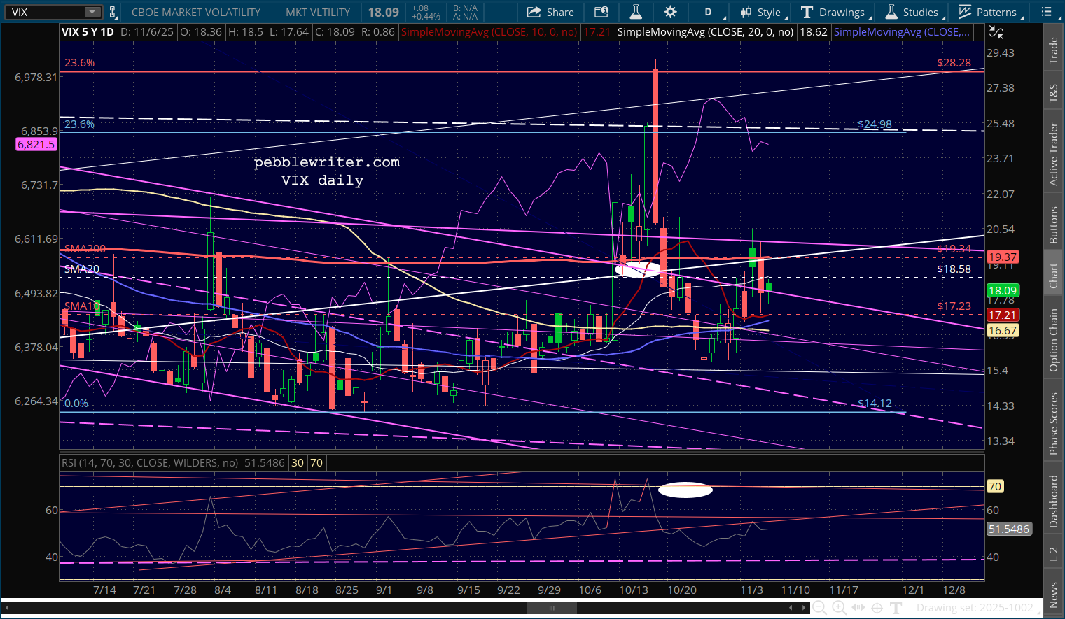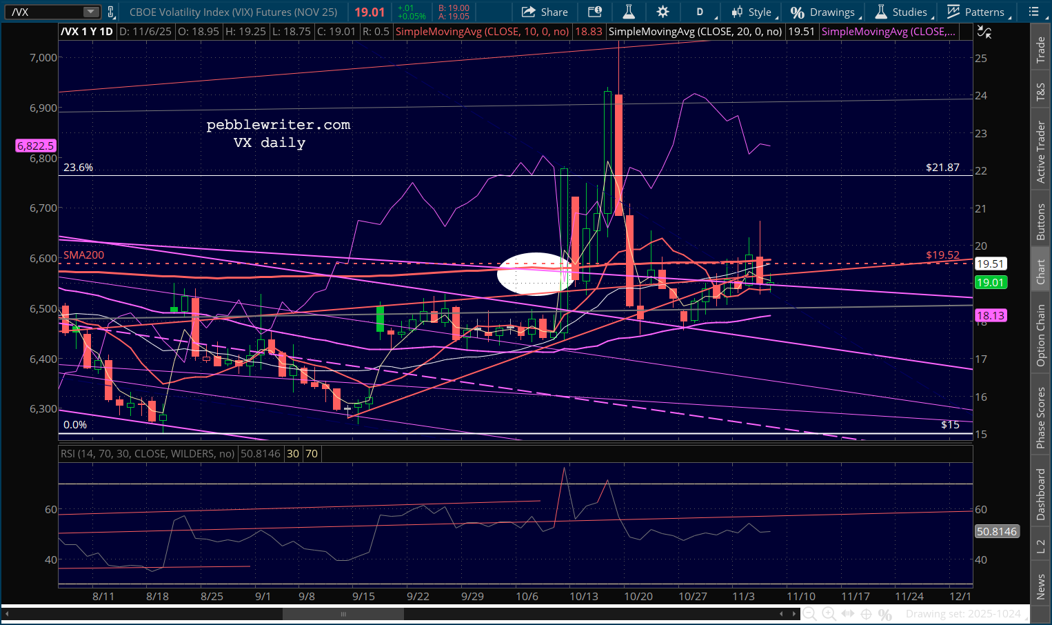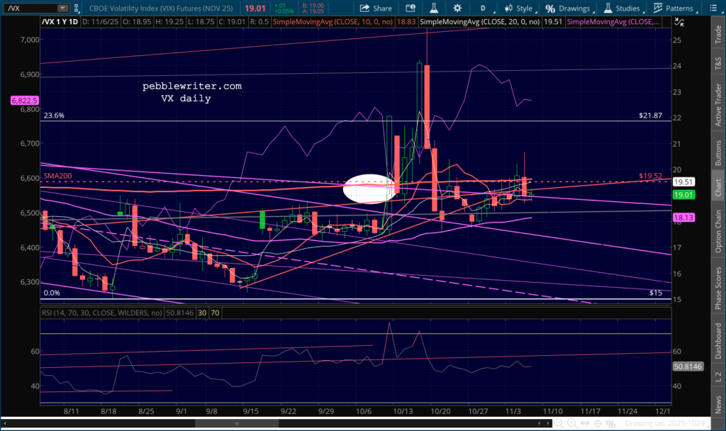 VIX and VX remain on the fence, but still above their purple channel tops.