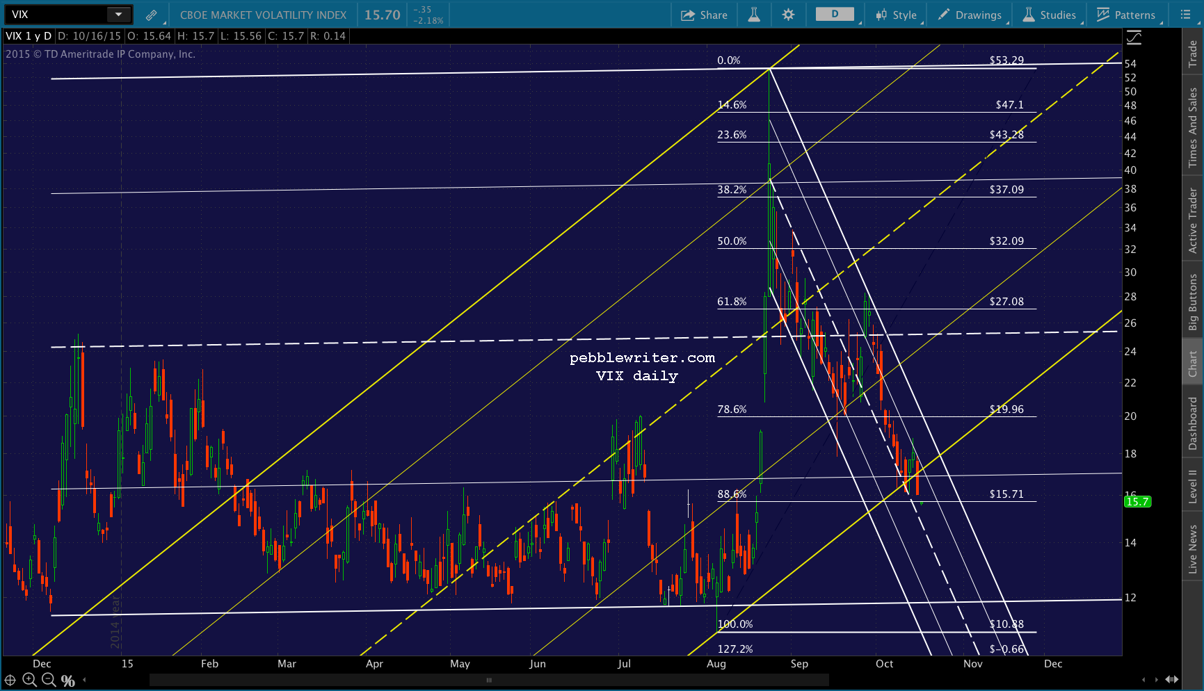 Arguing against a push up to all those magnets is VIX, which just reached the .886 retracement of its rise to 53.29 on August 24.