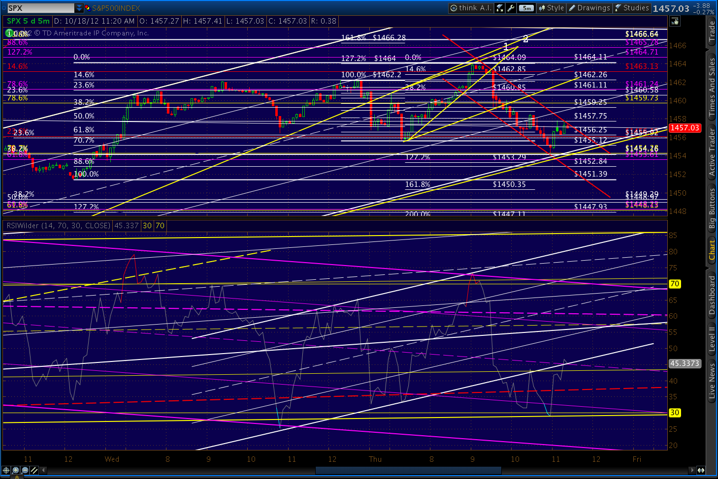 BTW, the .786 retracement of the 1451.39 to 1464.09 bump is 1454.11. The .886 is at 1452.84. At this point, it’s looking more like a return to the yellow (not purple) RSI channel bottom would correlate with a price tag on the yellow channel.