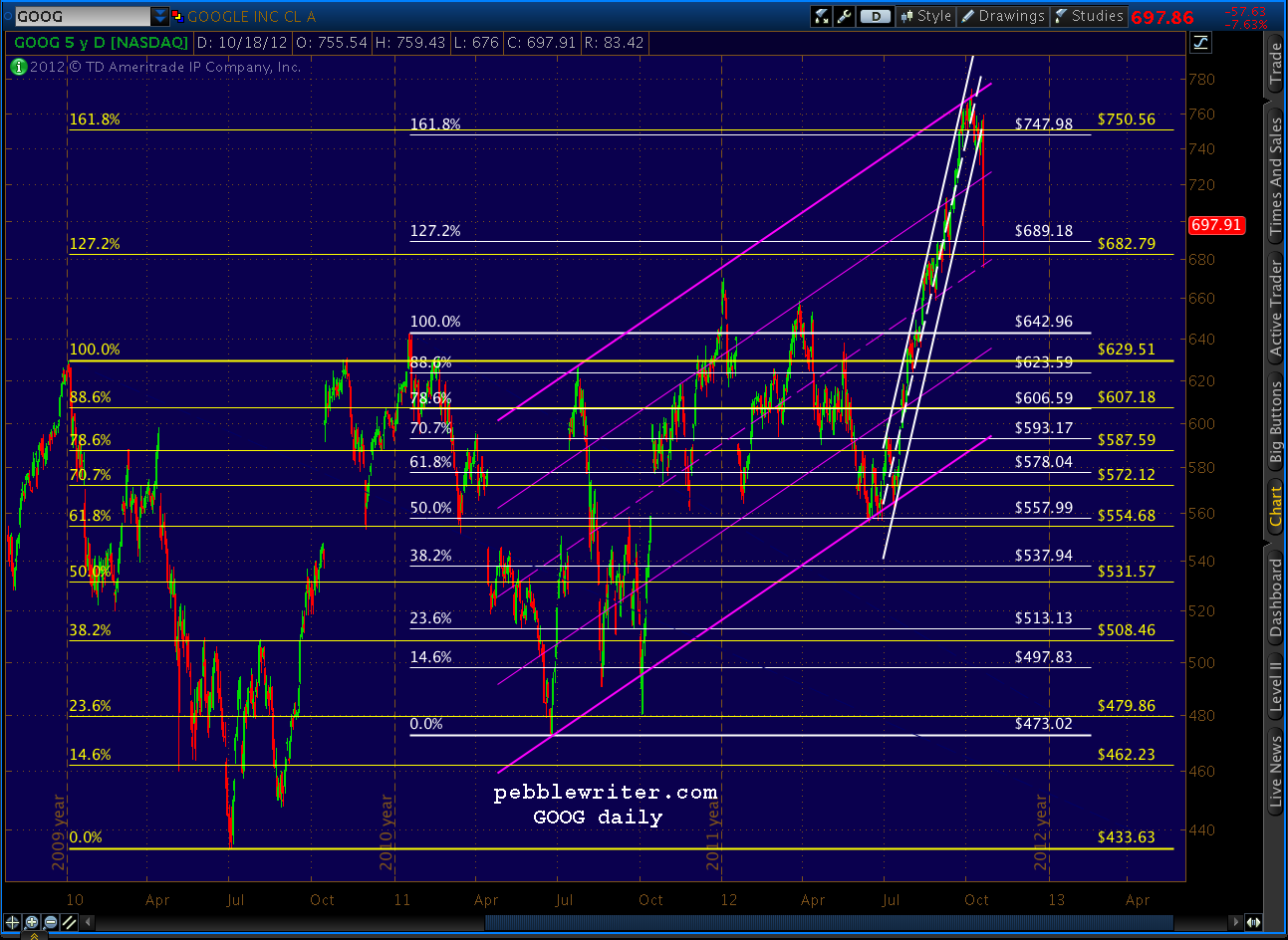 A lot of people are probably following the GOOG news. I charted it just the other day, as it’s one of those bellwether stocks that can swing the market.