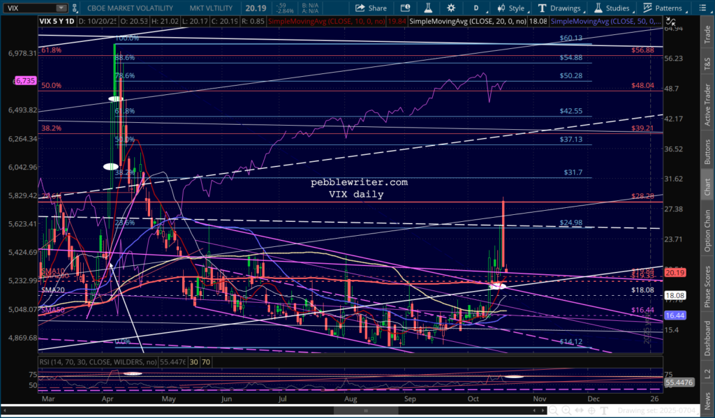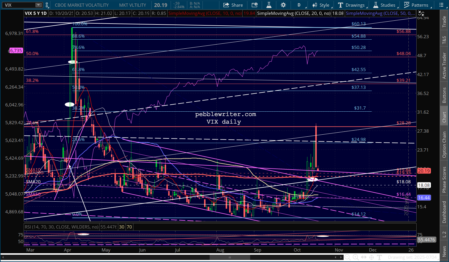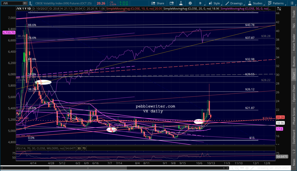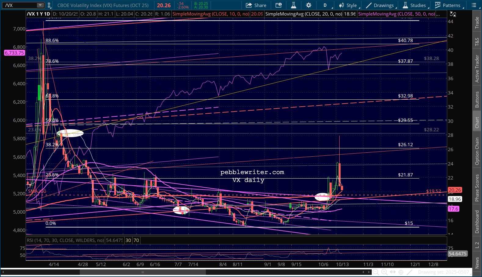 VIX and VX are still elevated, but threatening to fall back below the SMA200s.