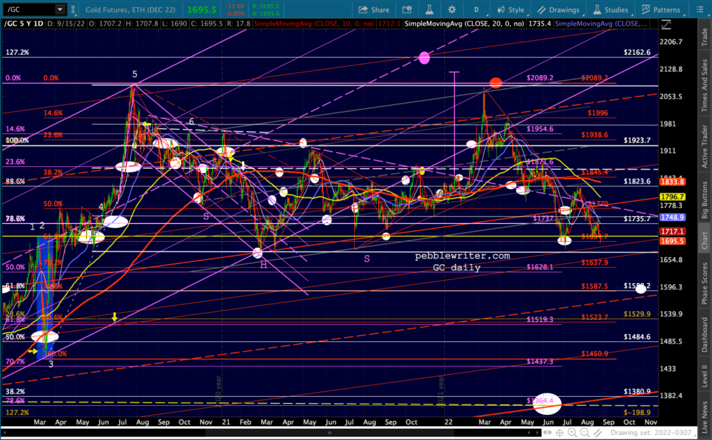 GC is testing its July lows. I’m still looking for new lows. If 1670 breaks down, 1588 looks likely.