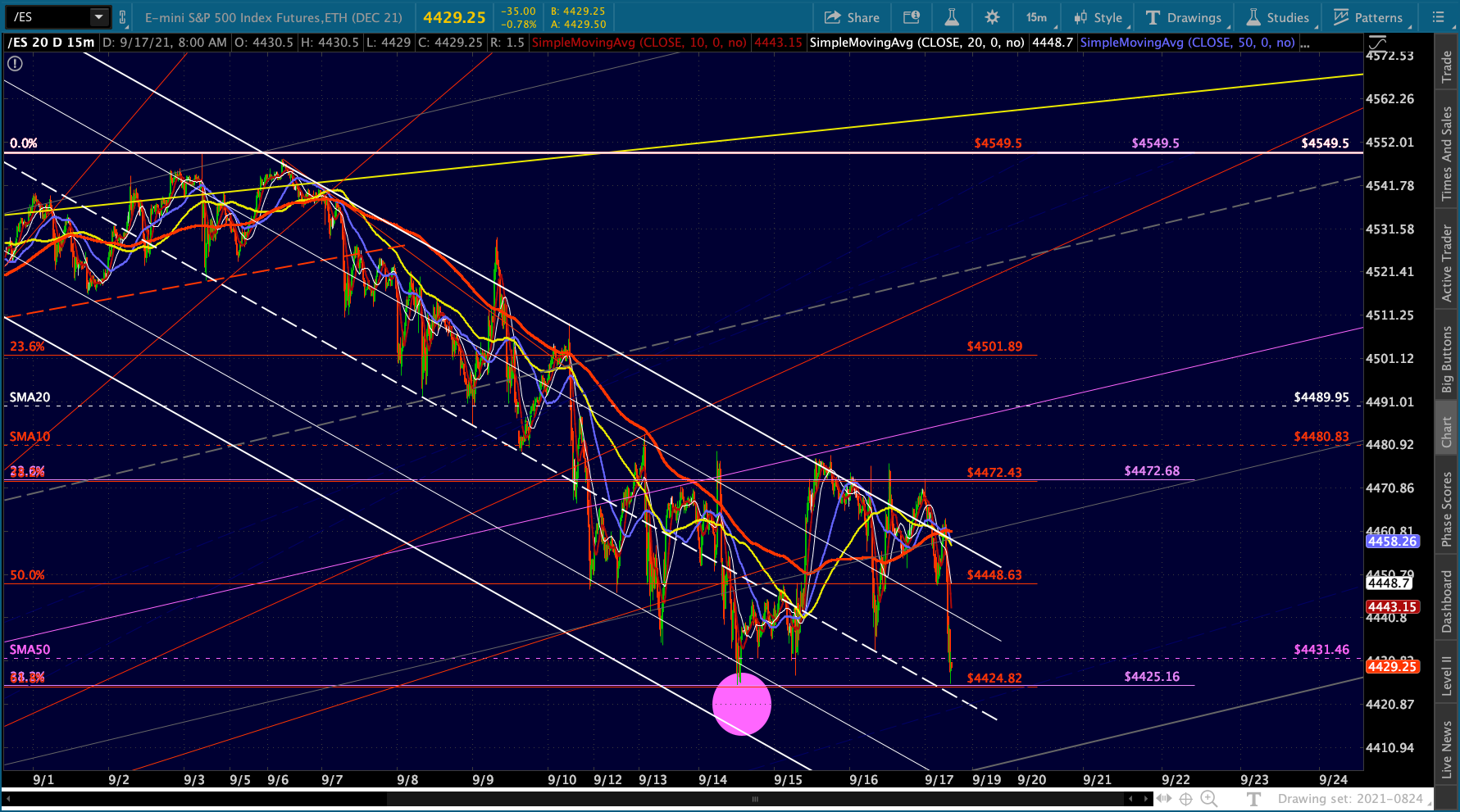 Bottom line, ES has a chance to tag its SMA50 (4431.46) without making a new low. SPX is still 10-12 points away from its (4435.46ish), but it whiffed last time as well.