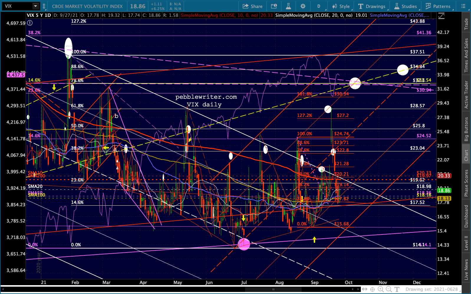 VIX is still back in the falling white channel and below the SMA200, though the 10/20 SMAs remain in bullish (bearish for stocks) alignment.