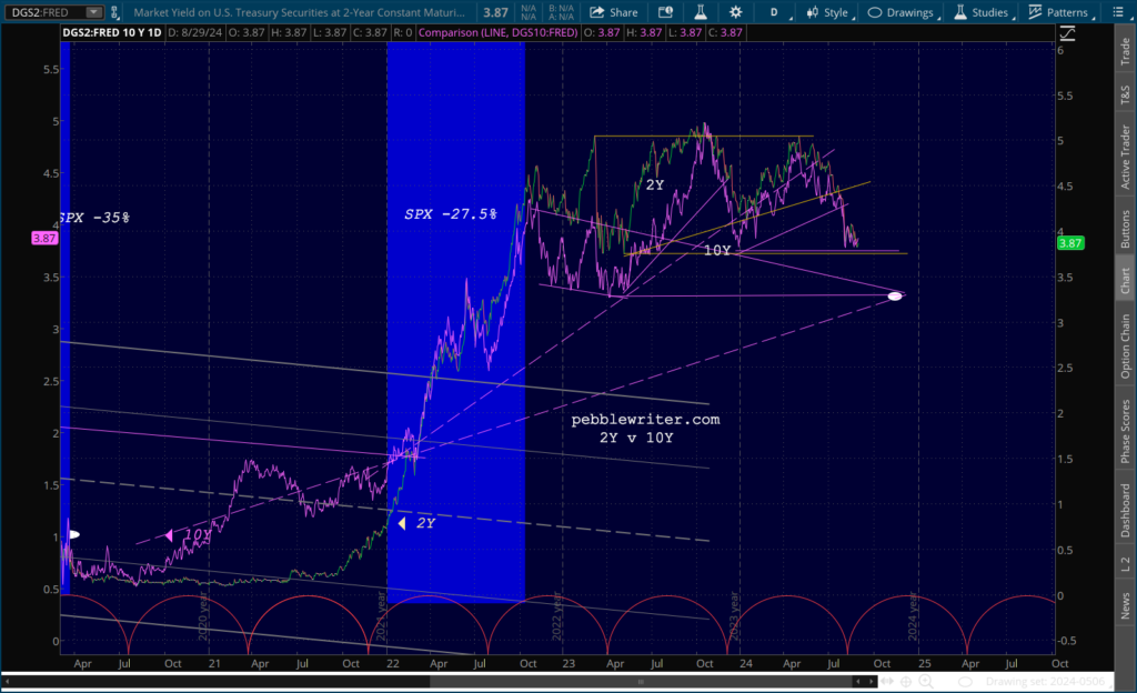 Oil and gas are both lower, impacting both the 2Y and 10Y equally in that they maintain the -3 bps spread.