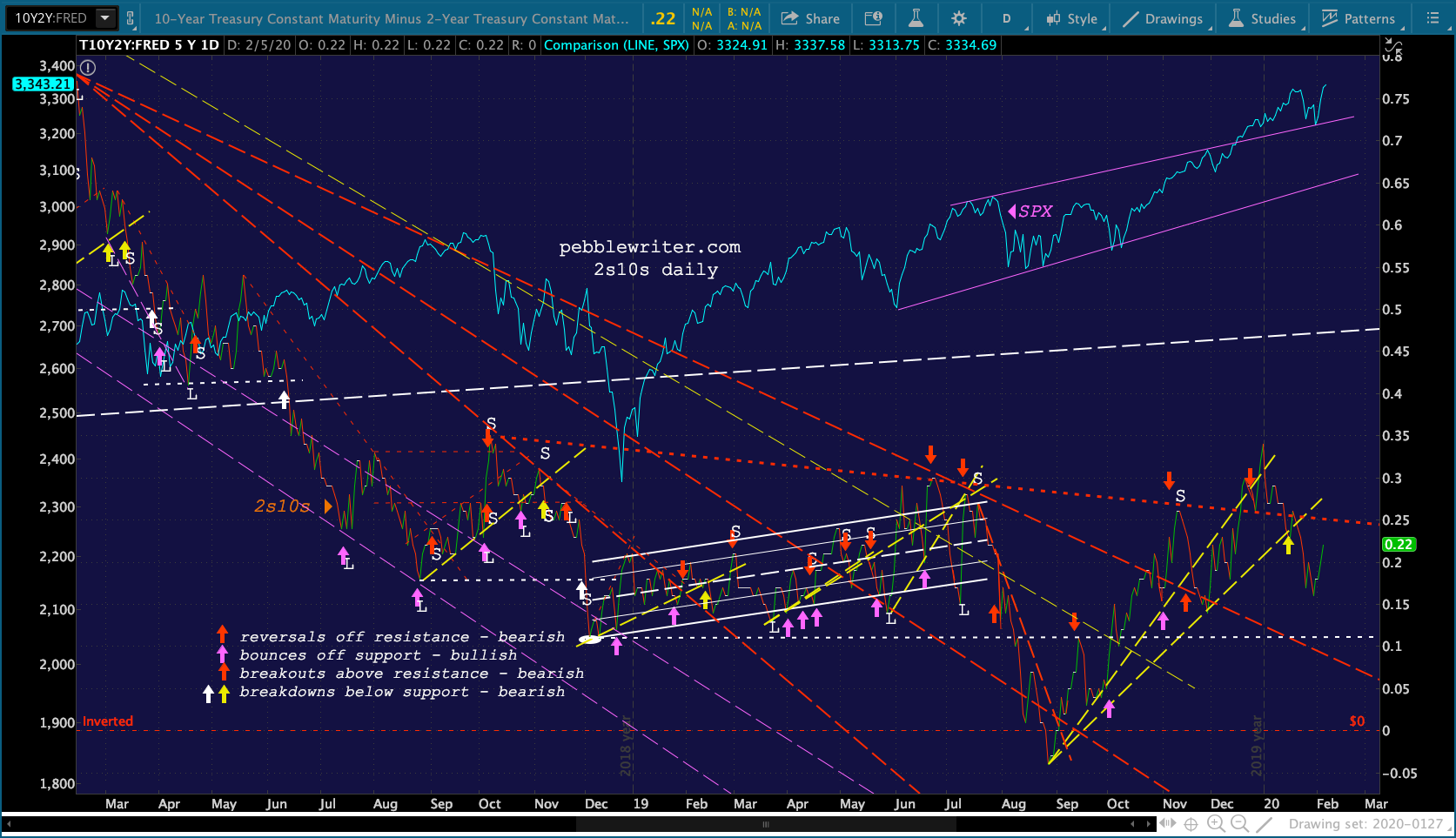The 2s10s is also getting a bounce, but it has still broken down and faced significant resistance at .25.
