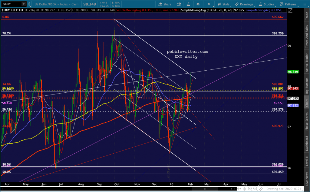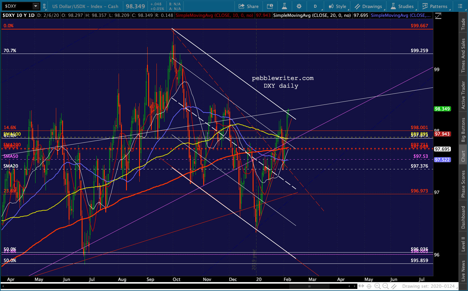 On to the markets. This one is easy. SPX will make new highs on the open this morning. But the 10-DMA is still below the 20-day, ES’s rising red TL is hanging by a thread…
