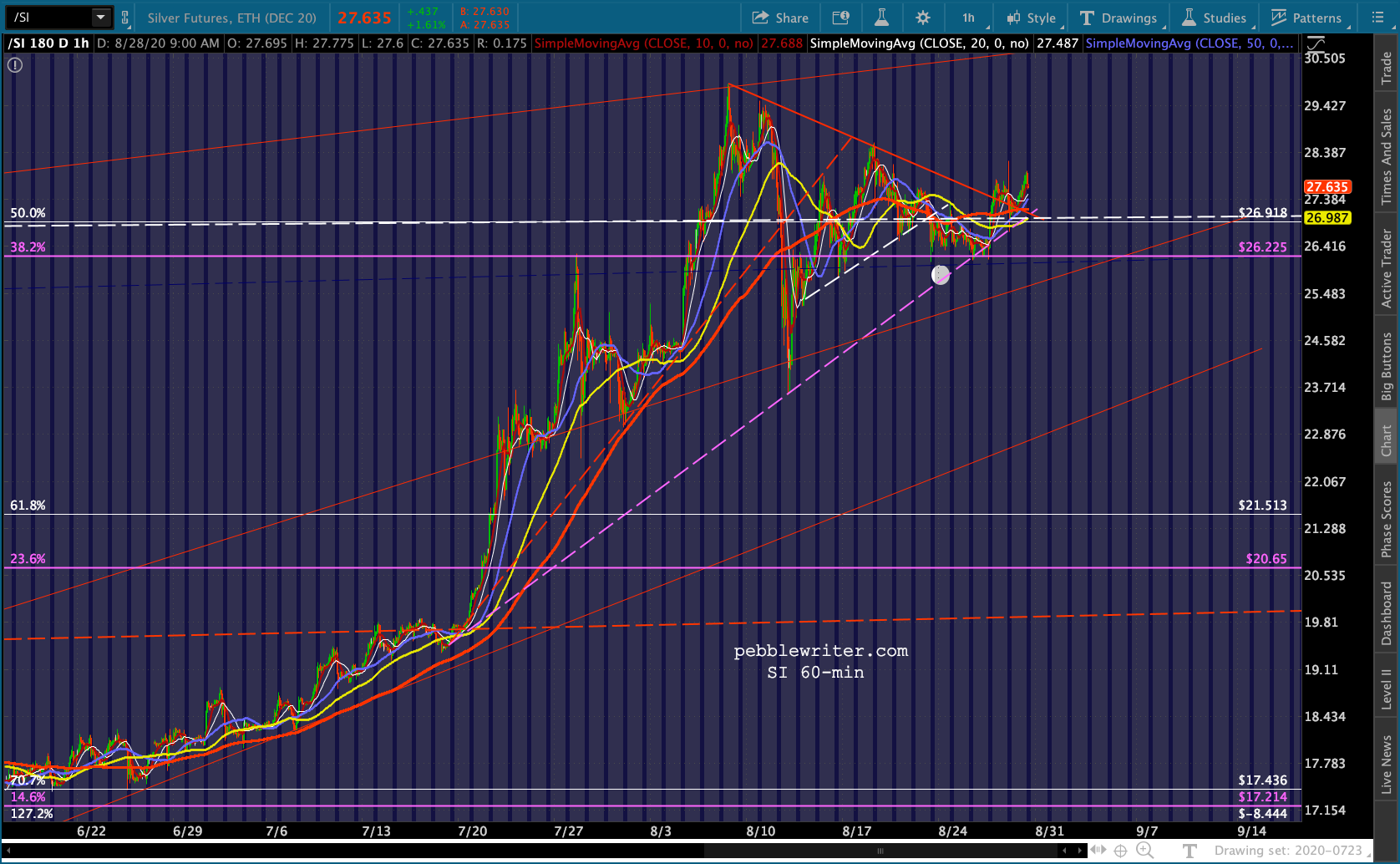 It should also provide a boost to GC and SI which have been threatening to break TL support for the past two weeks. The Fed’s newfound fondness for inflation as expressed yesterday hasn’t hurt.
