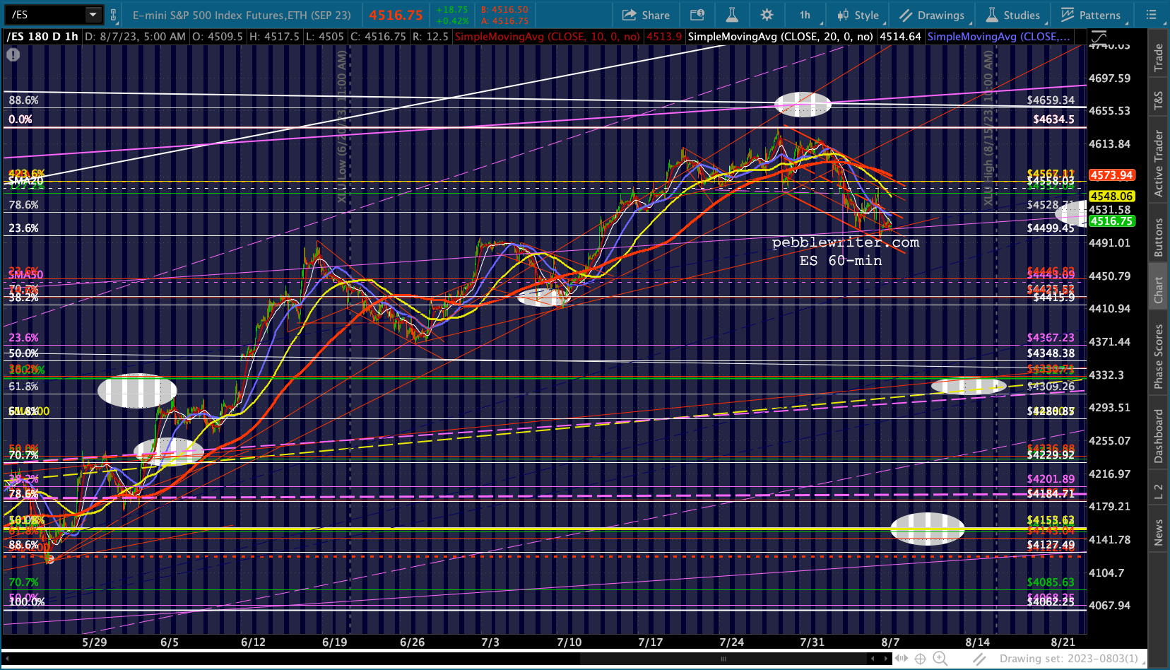 ES has established the early stages of a falling channel after bouncing at the TL from Jun 26 and Jul 9.