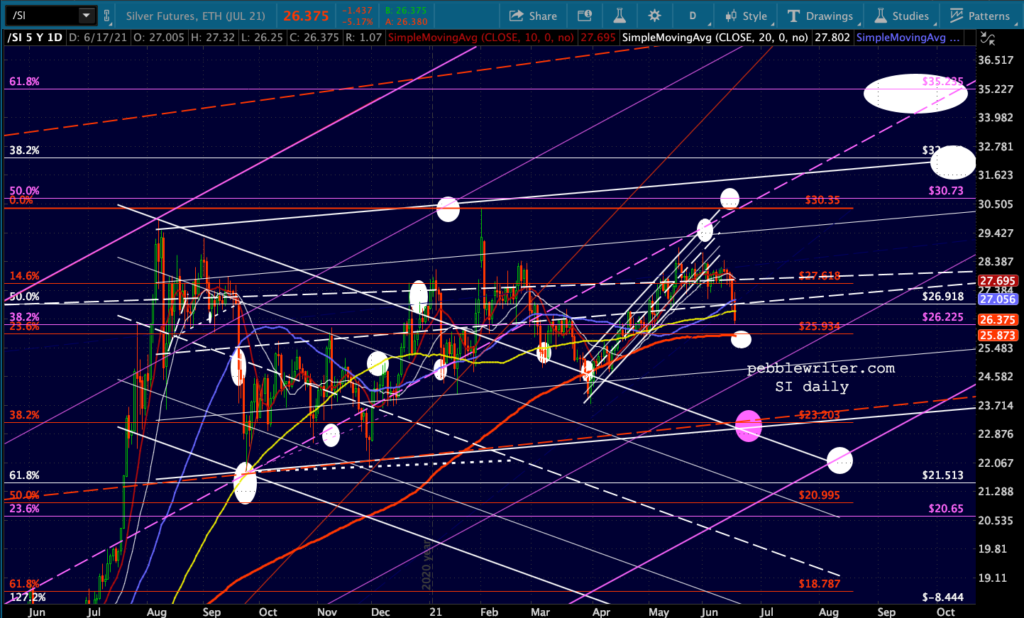 SI is finally testing its SMA200 – an important level of support for it. Failure to hold here could see it reach 22-23.