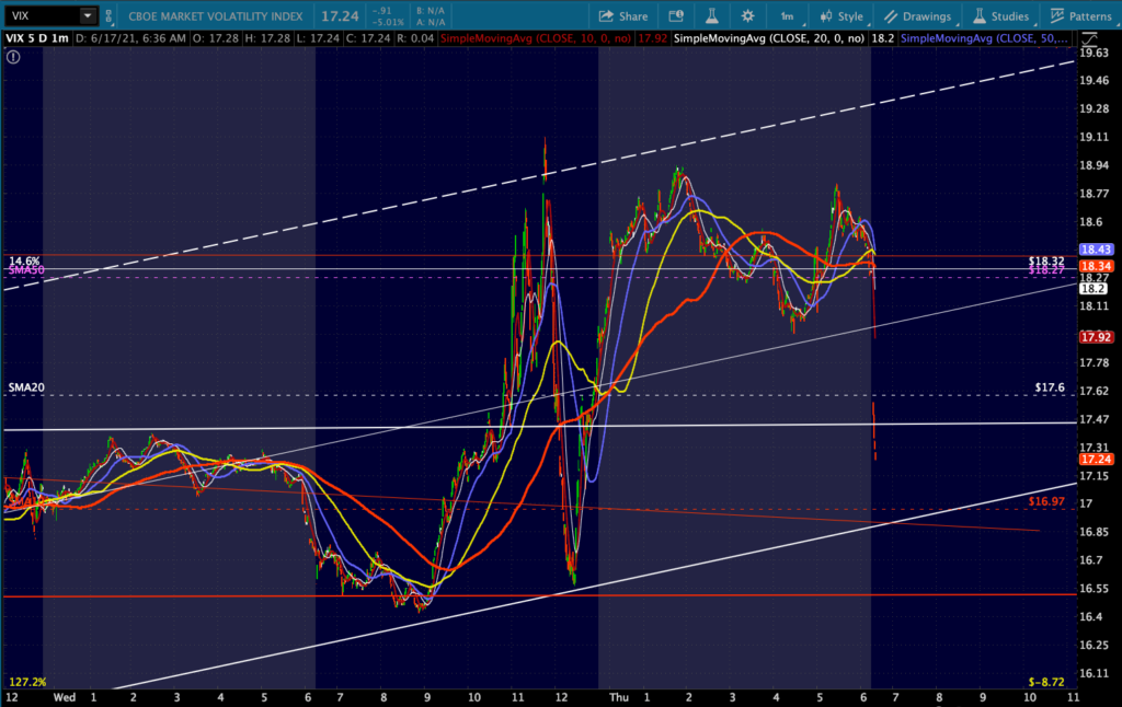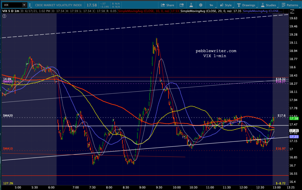 Equities have been all over the map today in a 40-pt range, directed primarily by VIX’s timely collapse.