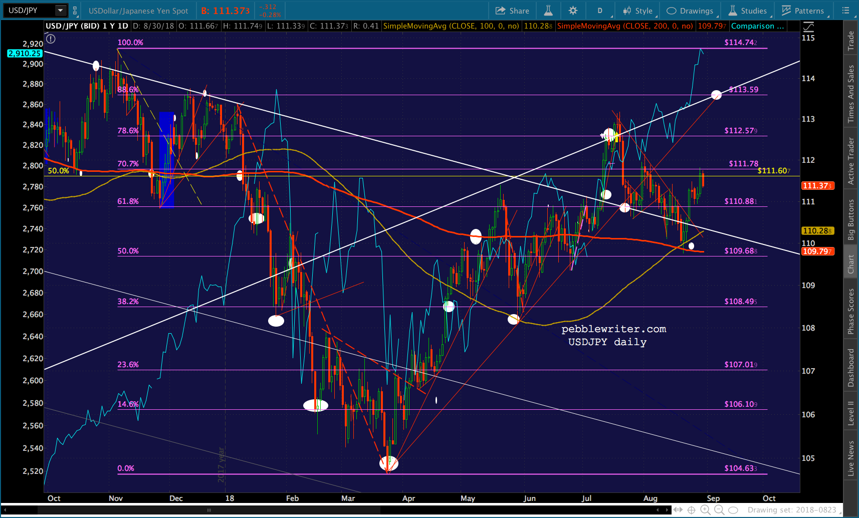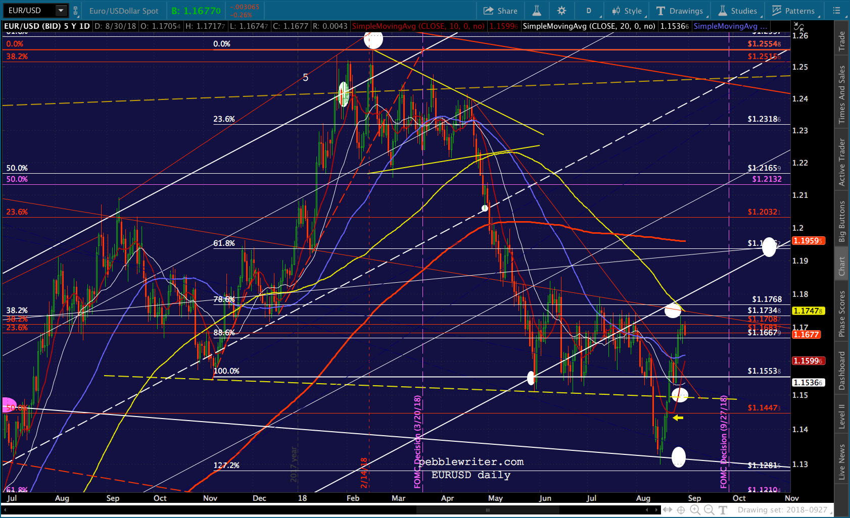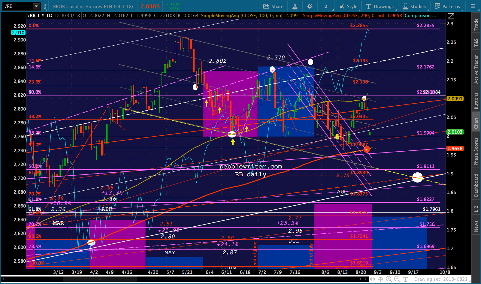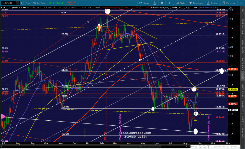 It’s worth noting that the current red channel isn’t that far off from the slope of the Nov 2017 – Feb 2018 one. In fact, if we tilt it to match, ES reaches 3076 about the time of the Sept FOMC meeting.