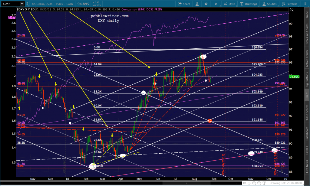Don’t look now, but the Turkish lira is taking a beating again. Much of it is self-inflicted (Erdogan), but it’s impossible to ignore the fact that the breakout from both the white channel and the more aggressive red channel occurred as the DXY rebounded sharply from it’s February lows.