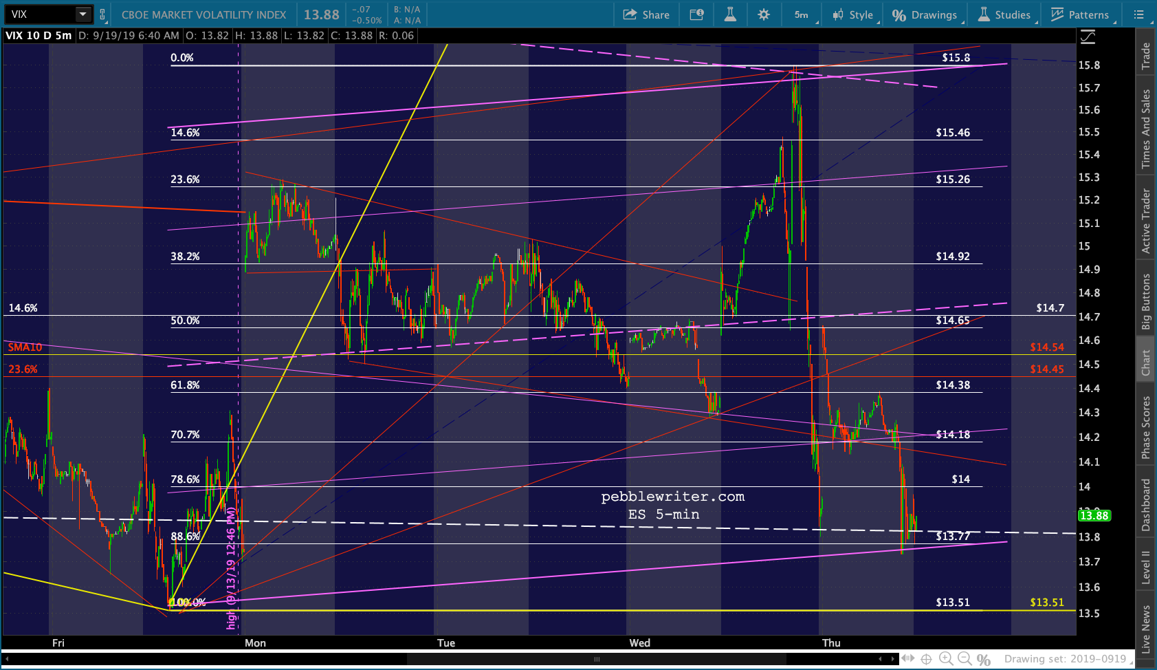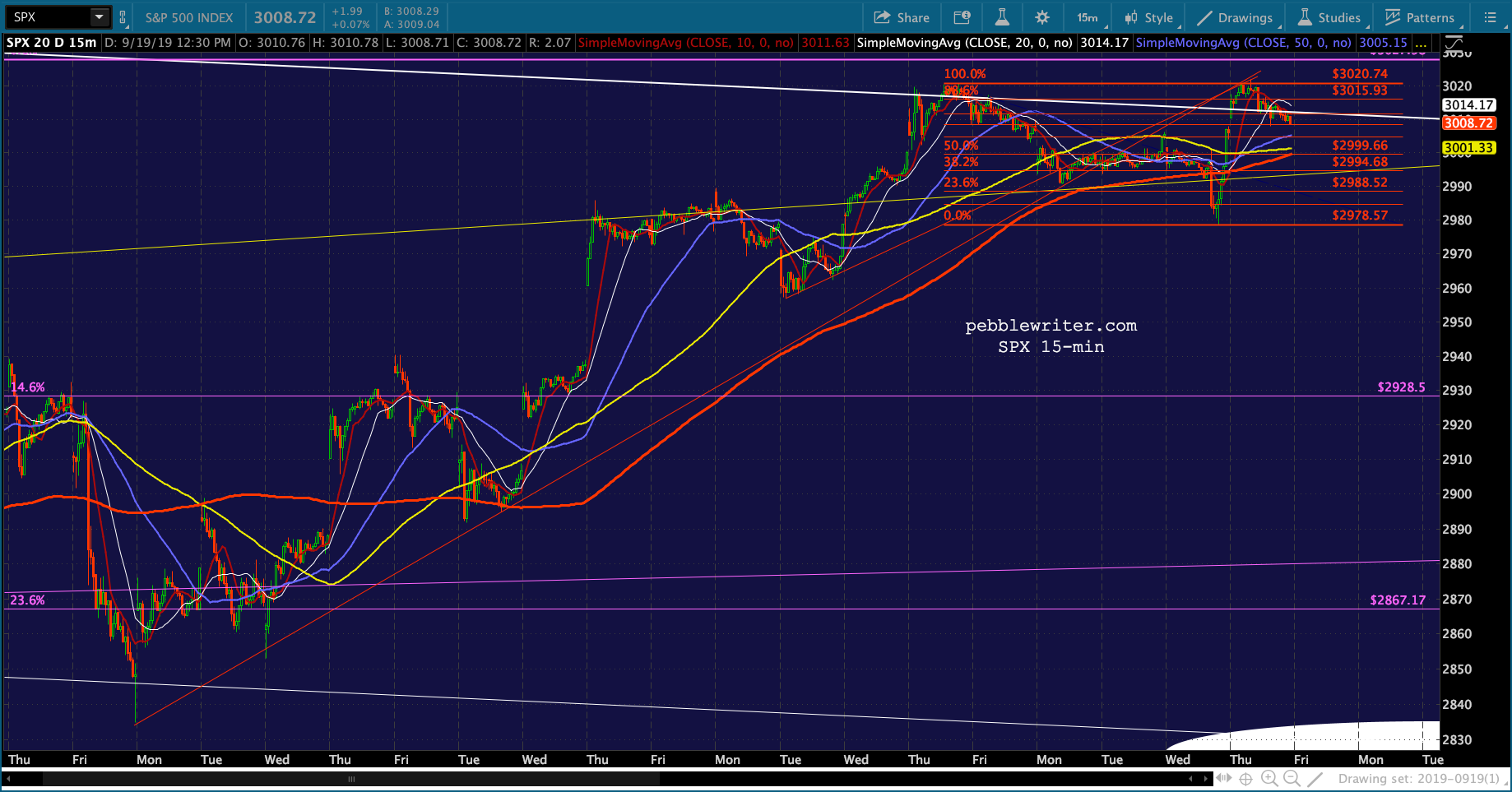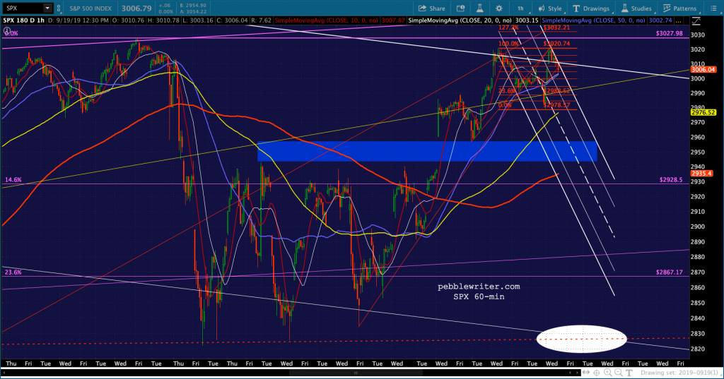 The key charts to watch today are the same as yesterday. If VIX’s .886 or lows hold today, the bears are still alive. If not, we’re looking at a retest of the 3020.42 highs, the 3027.98 highs, or the 2.618 Fib extension at 3047.34.