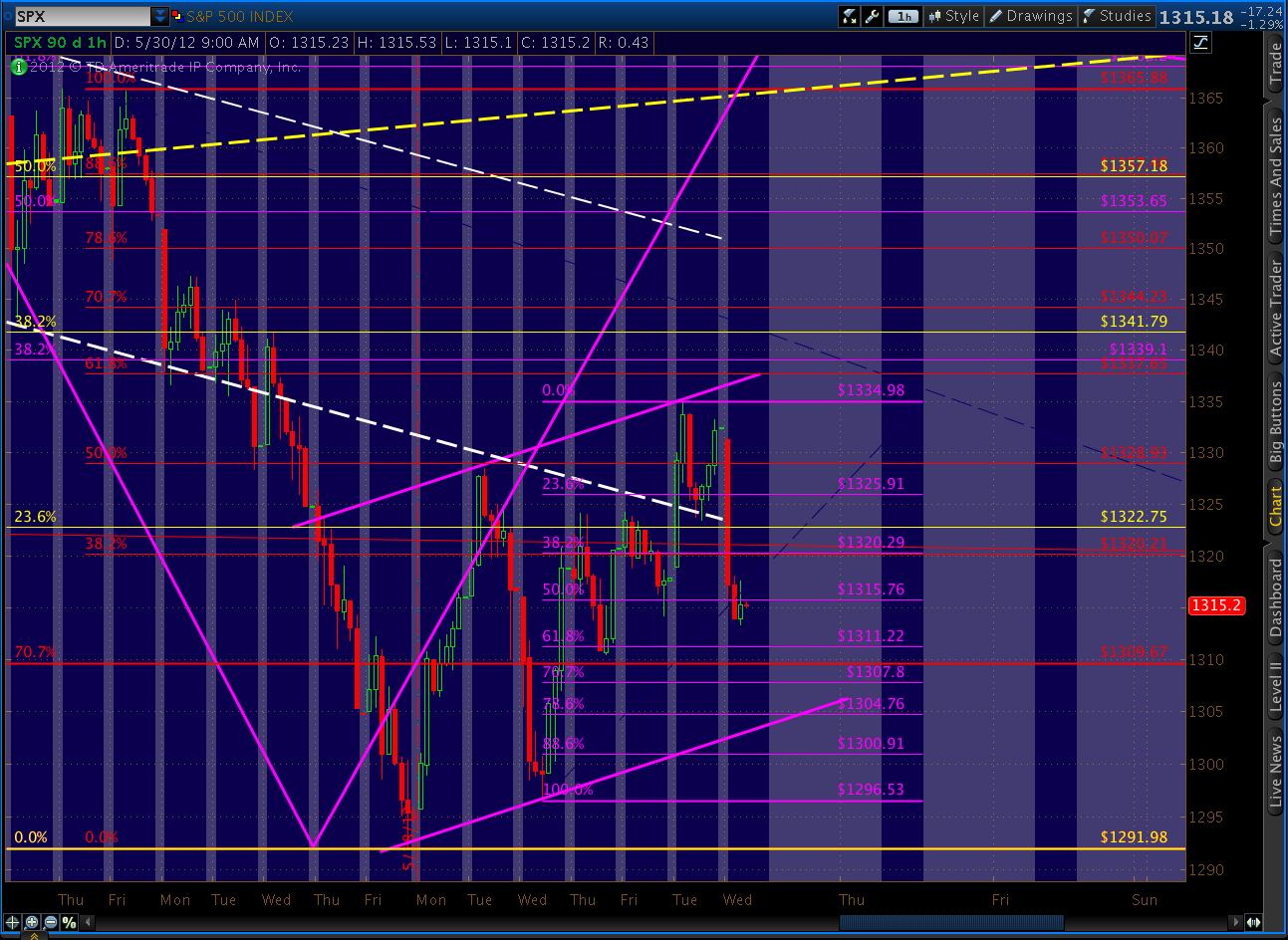 This morning, we’re back down below fan line #5, but that’s intraday. What matters is where we end up at the close. And, I’d be surprised if we close back down below that line — which roughly correlates to 1317-1320.
