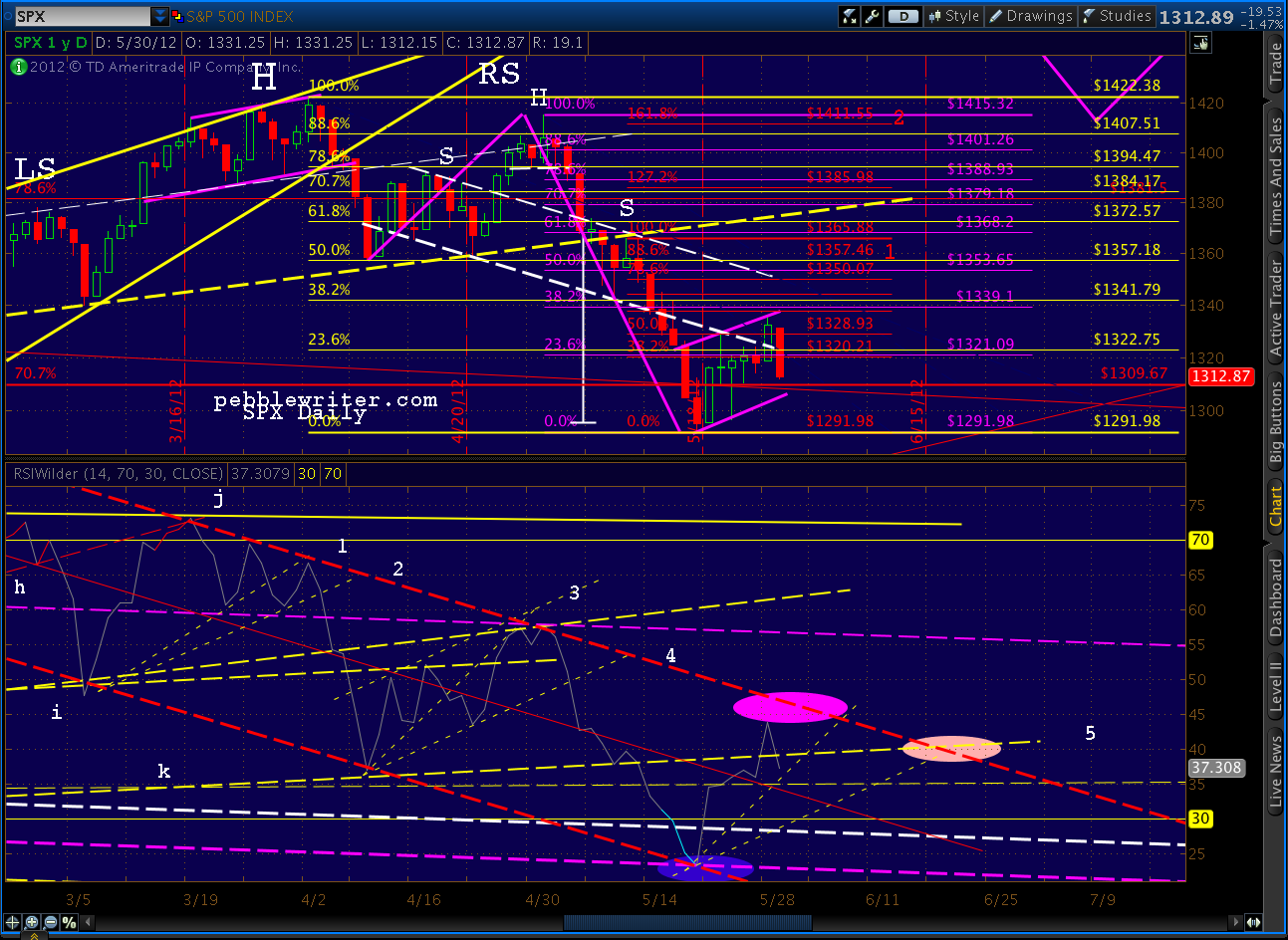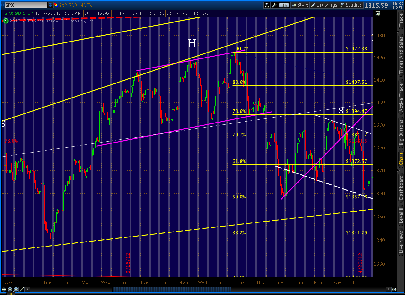 The SPX appears to be tracing out a channel/rectangle much like the one exhibited around the 1422 top. They’re both about 32 points from top to bottom.