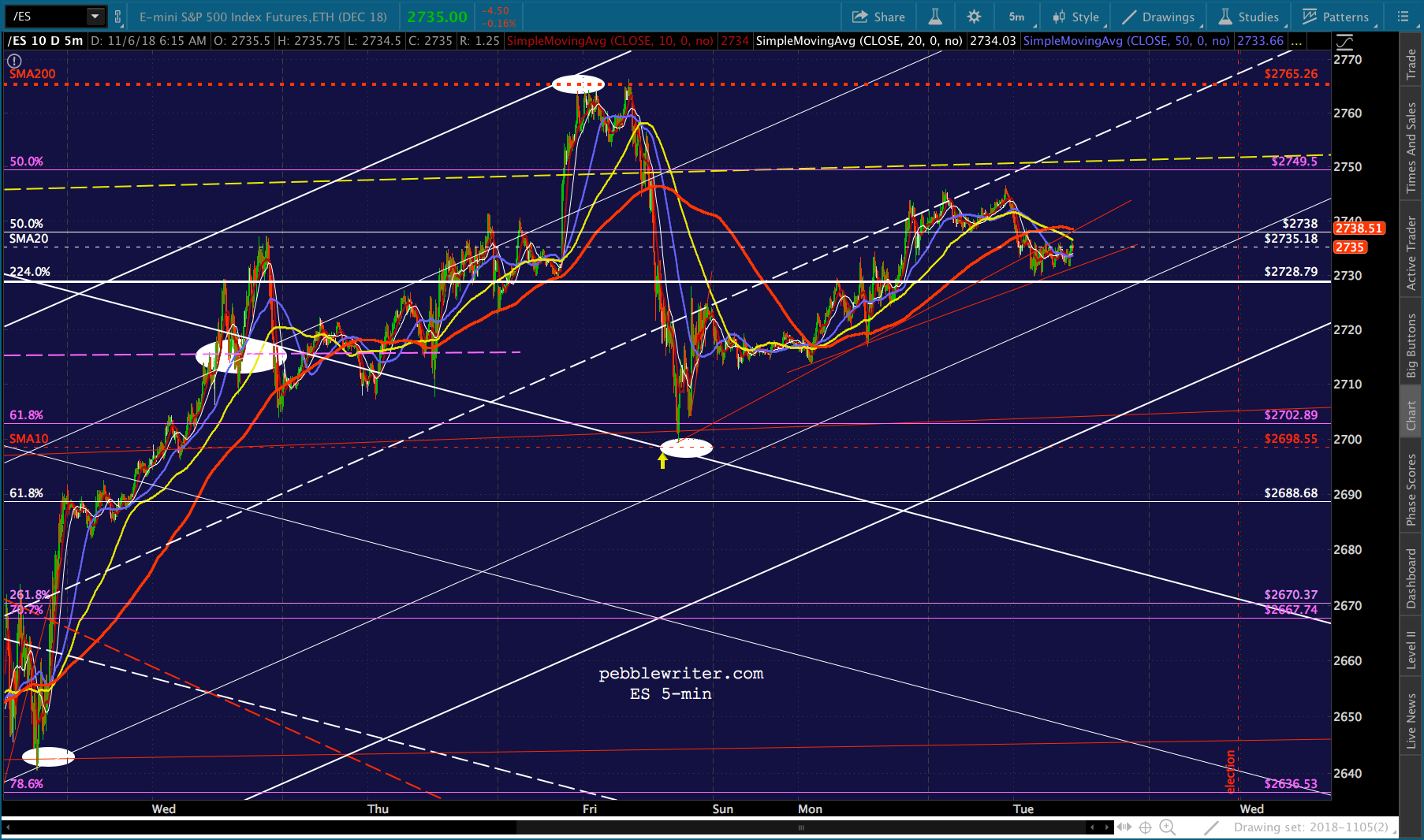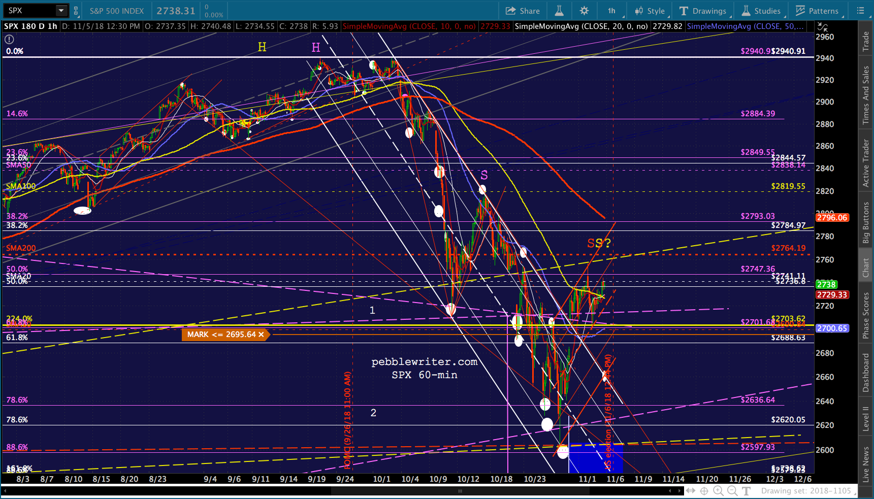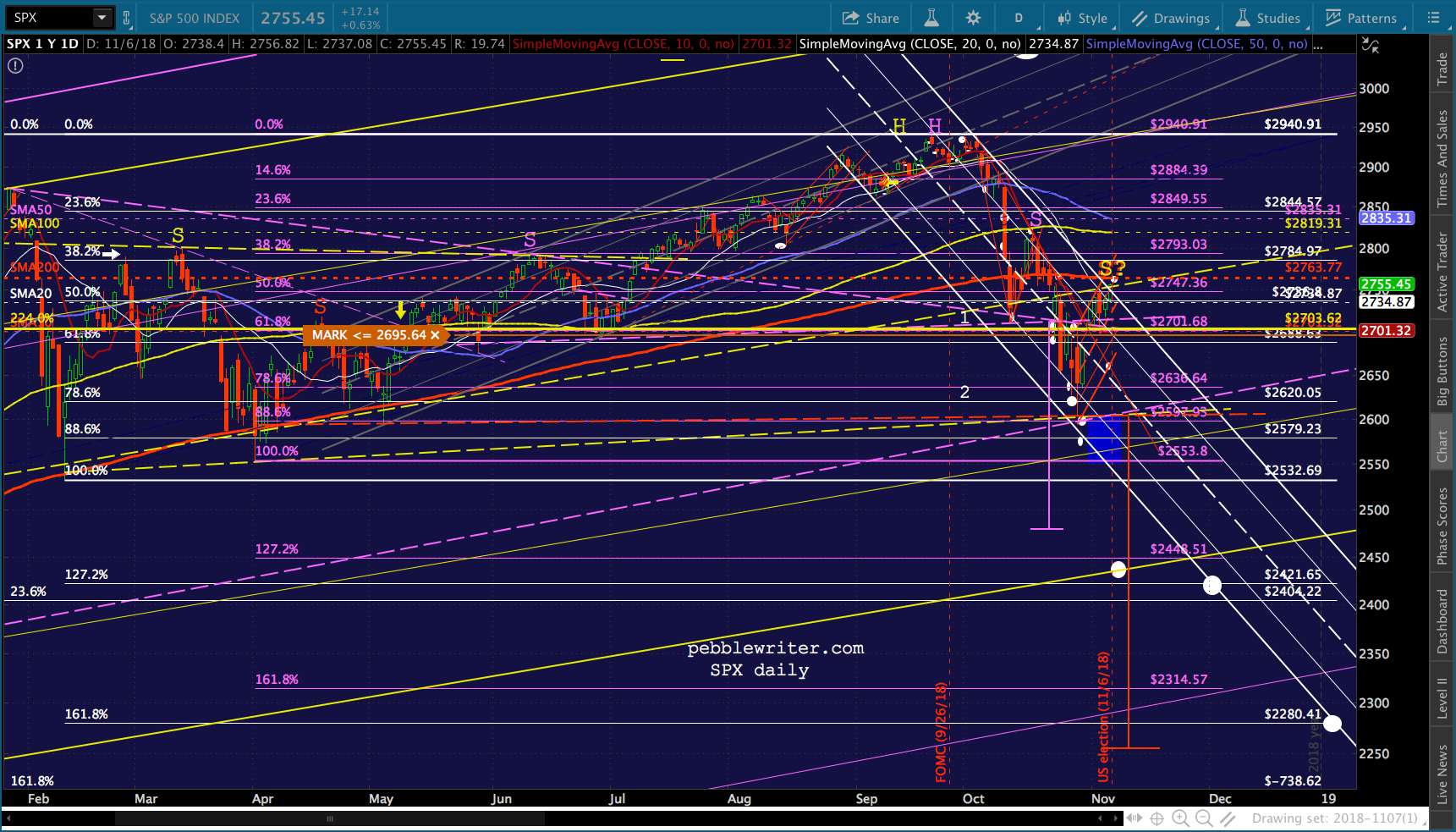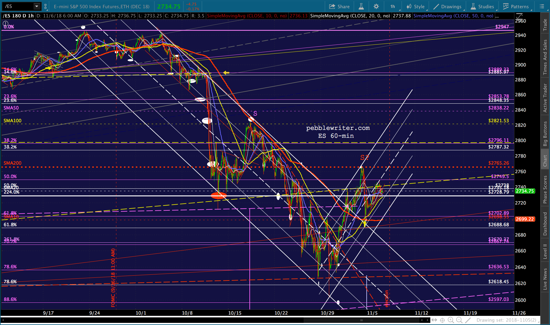 All it took to erase a 4.5% overnight plunge in ES was a severe hammering of VIX and ramp jobs in USDJPY and CL. I don’t see why tonight would be any different. Though, there’s the possibility that fundamental investors who have bought into the Trump Rally concept would freak if Dems were successful enough. If so, SPX could drop 52 points to its 2.24 or even 158 points (5.7%) to its .886 before doing any serious damage.