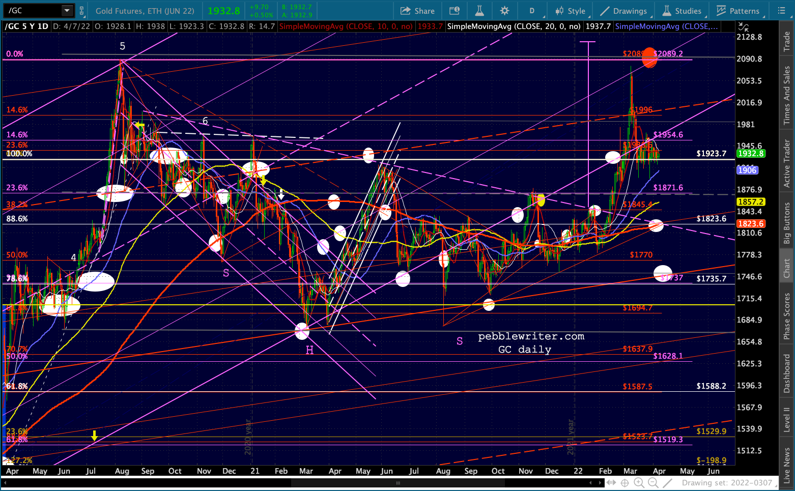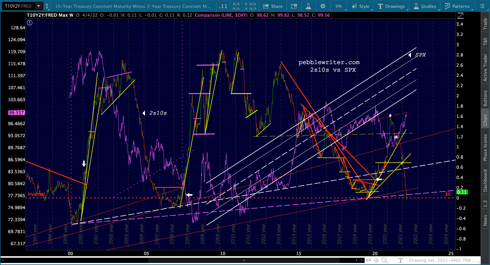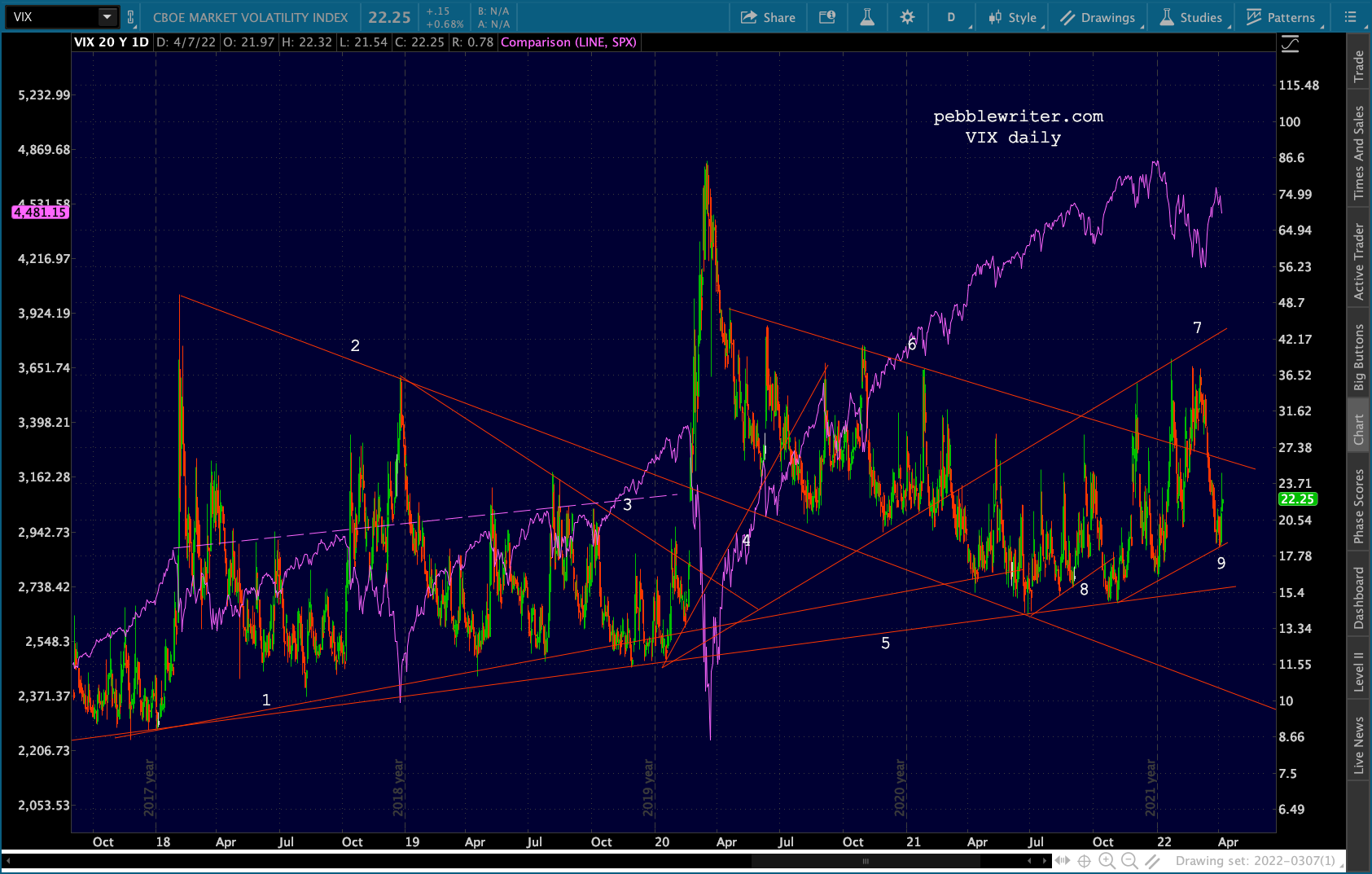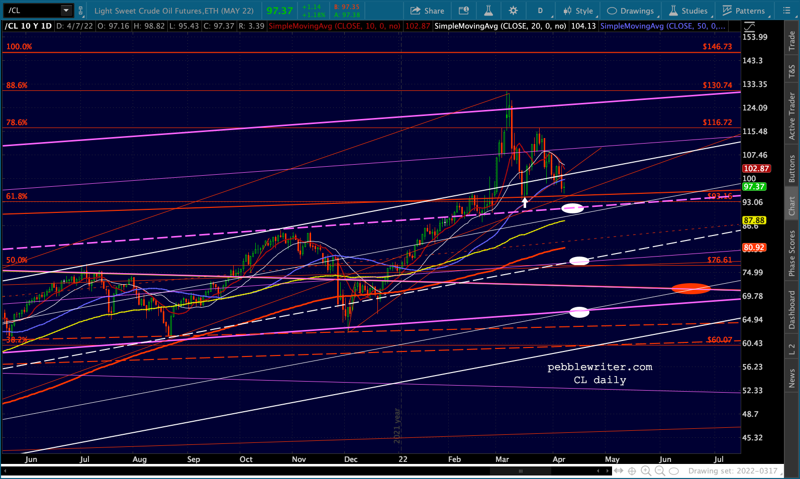 The 10Y, meanwhile, has slipped slightly above the yellow channel top and .786. I’ve posted about this every day because it’s so important. It has the potential to really upset the markets.