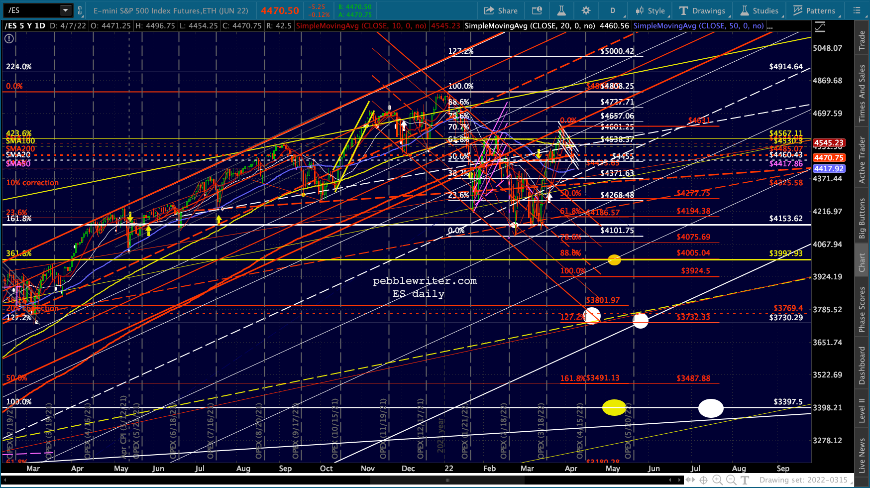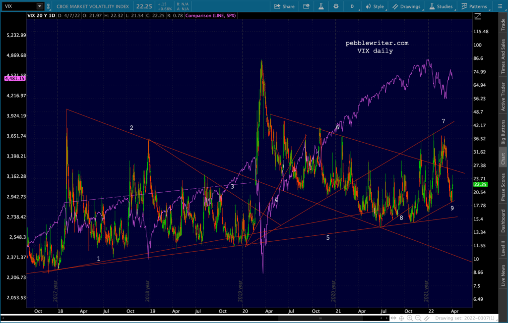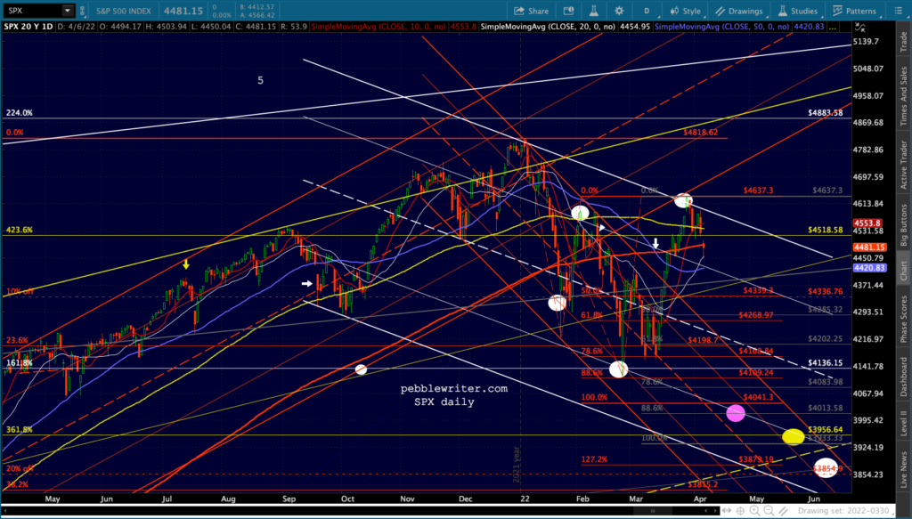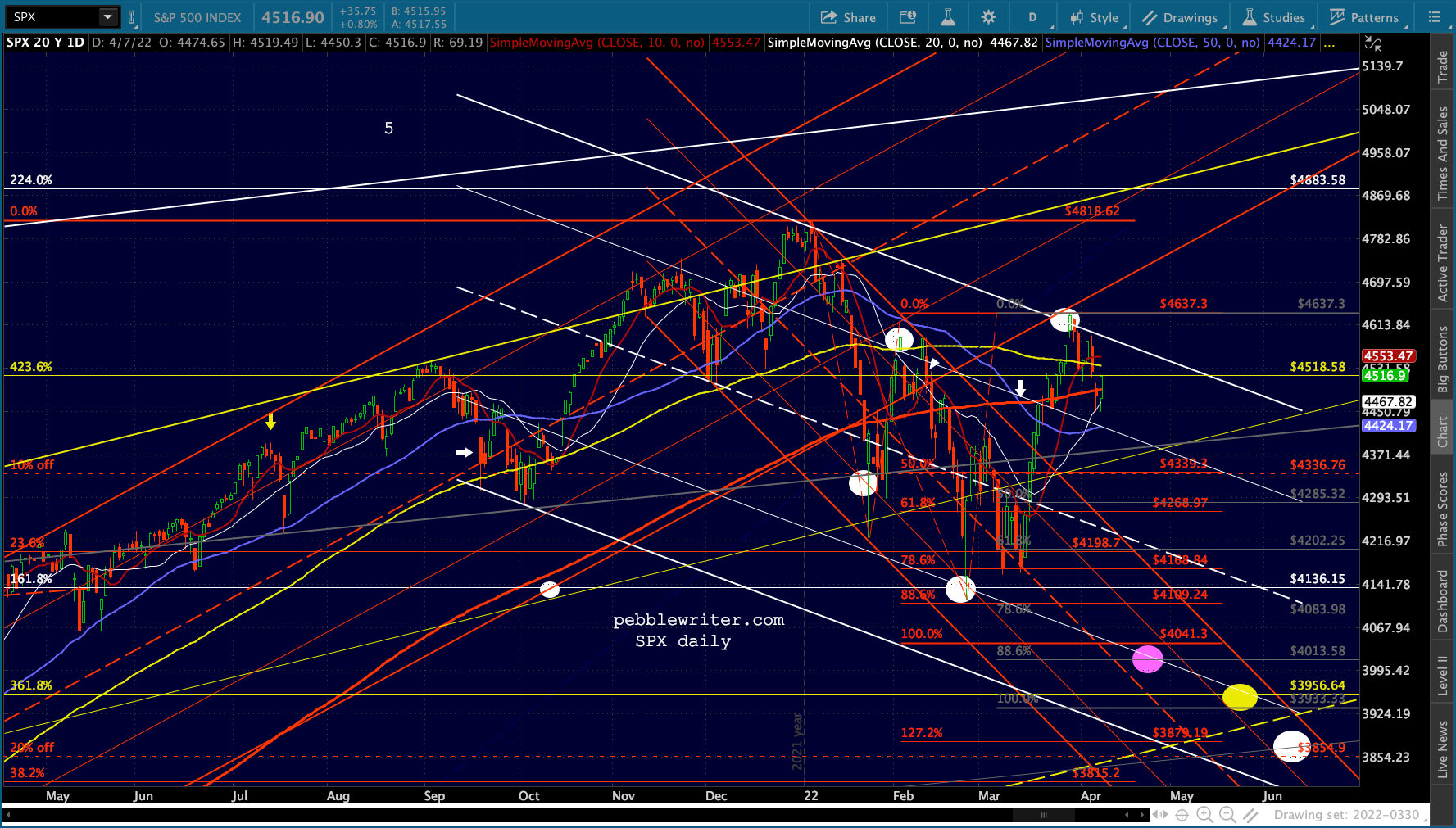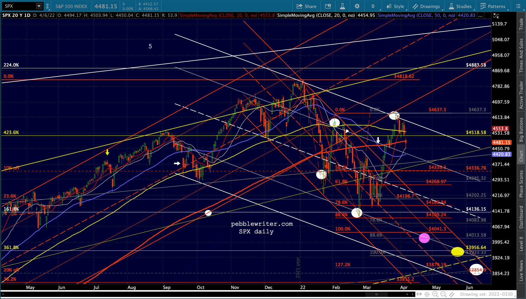 The 10Y, meanwhile, has slipped slightly above the yellow channel top and .786. I’ve posted about this every day because it’s so important. It has the potential to really upset the markets.