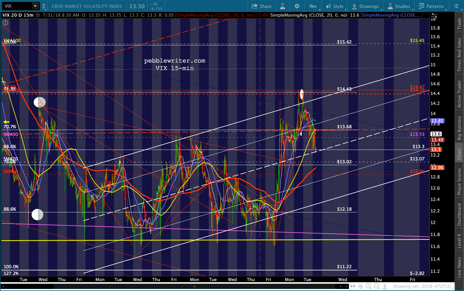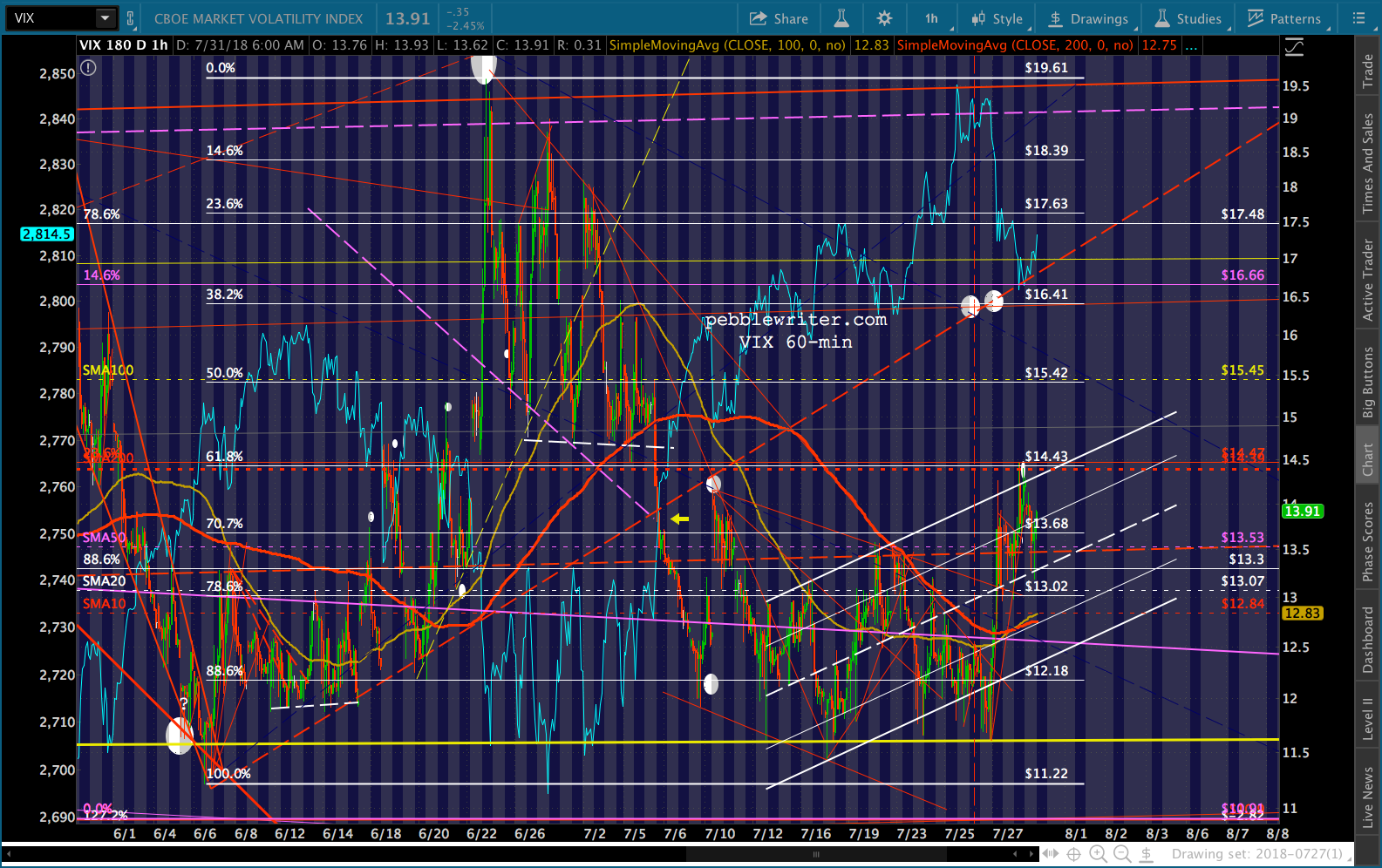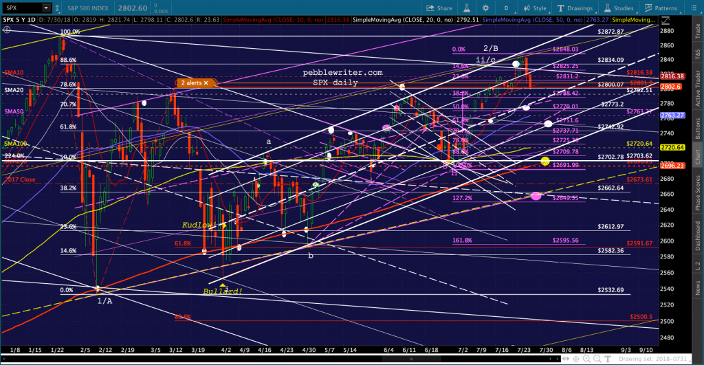 As to SPX, it backtested the white channel line and is tumbling at the moment, testing the SMA5 200 as VIX gets a very slight bounce off the white channel midline.