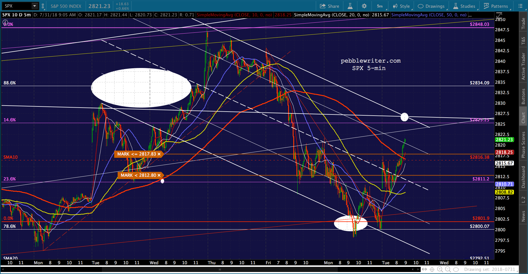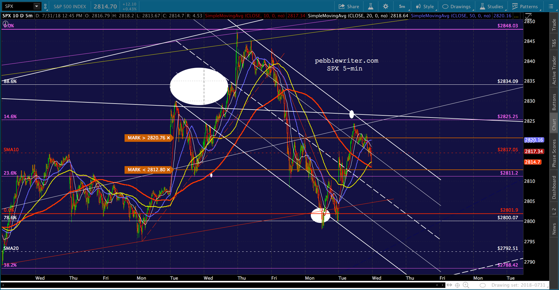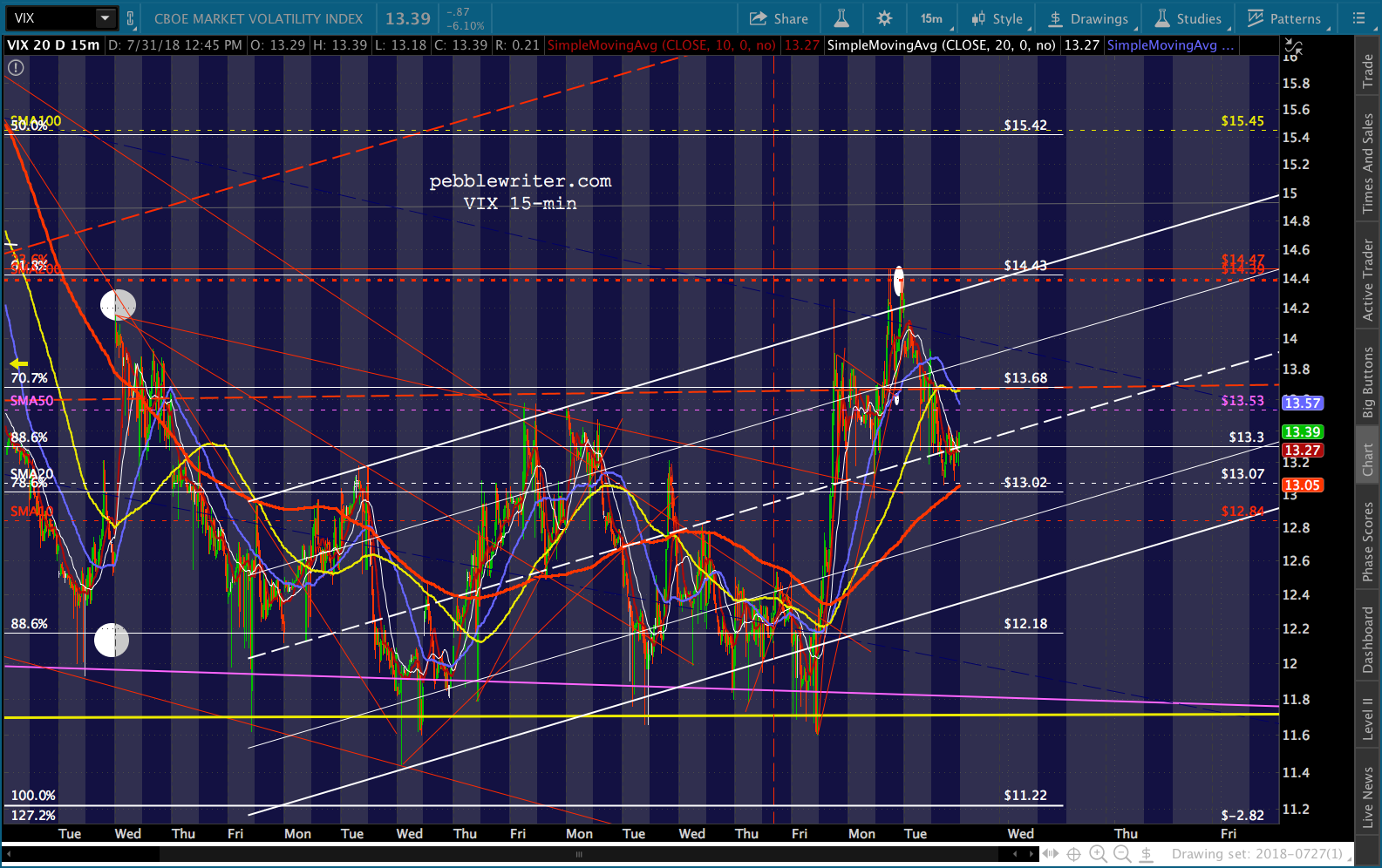 As to SPX, it backtested the white channel line and is tumbling at the moment, testing the SMA5 200 as VIX gets a very slight bounce off the white channel midline.