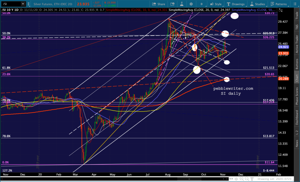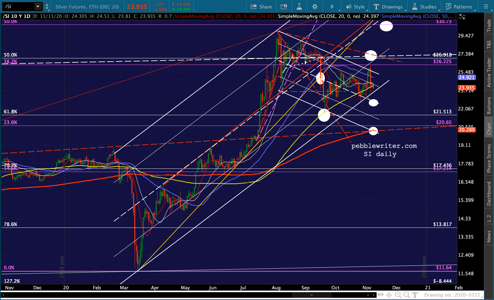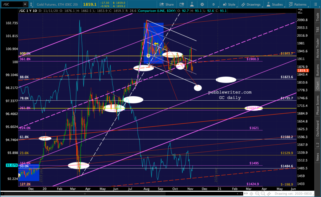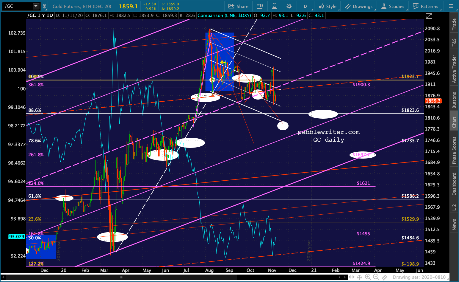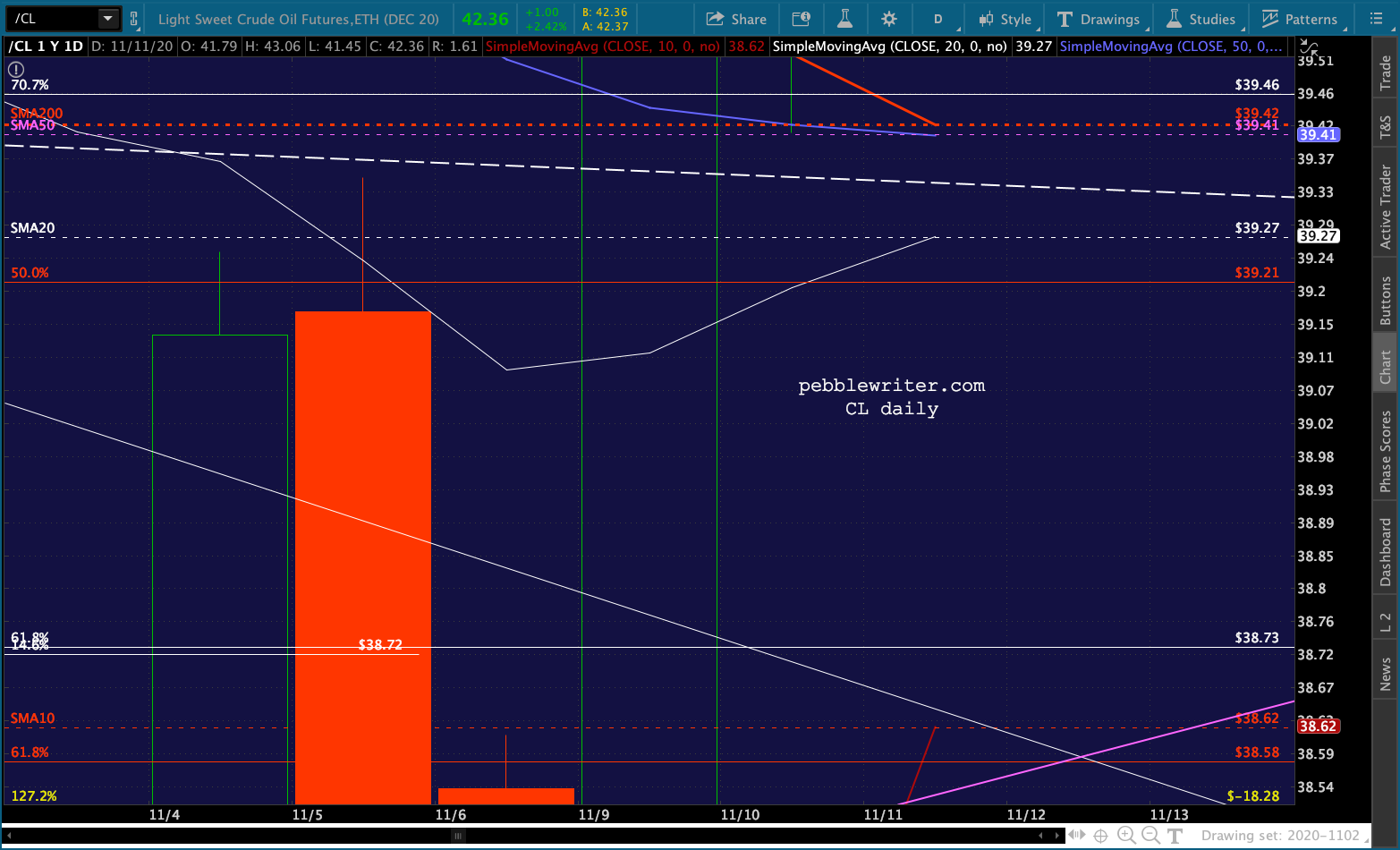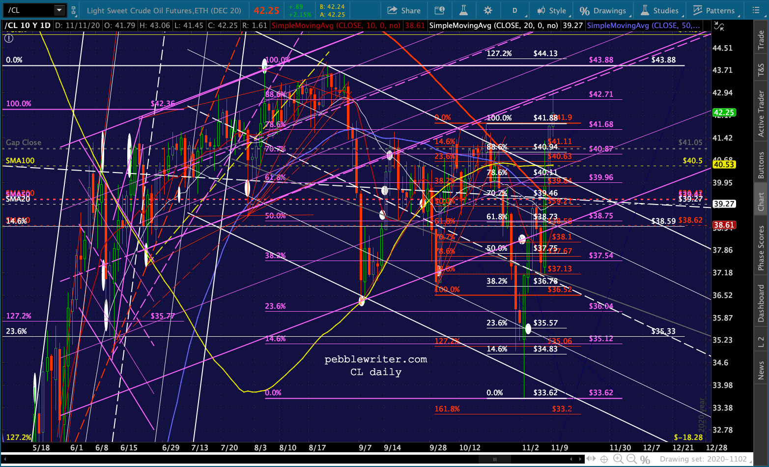 The biggest surprises among our charts have been CL and RB. CL’s falling white channel is shifting and it has regained the rising purple channel. The EIA inventory data won’t be released until tomorrow due to the holiday.