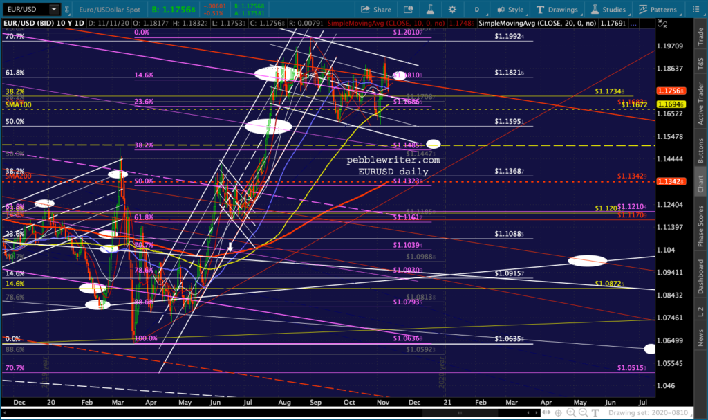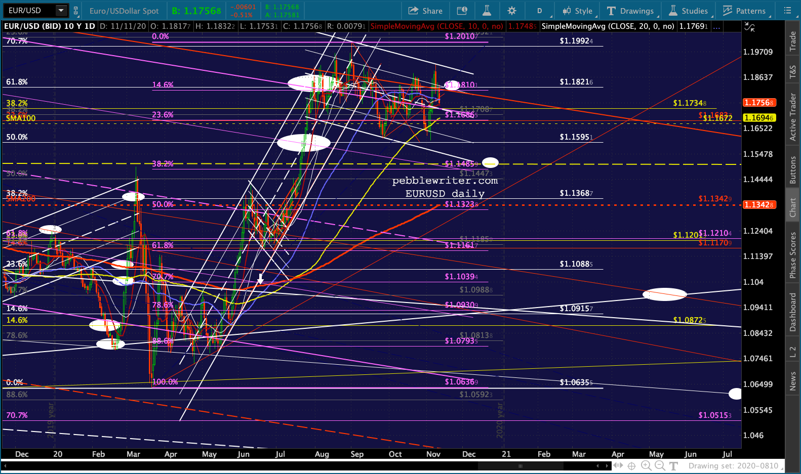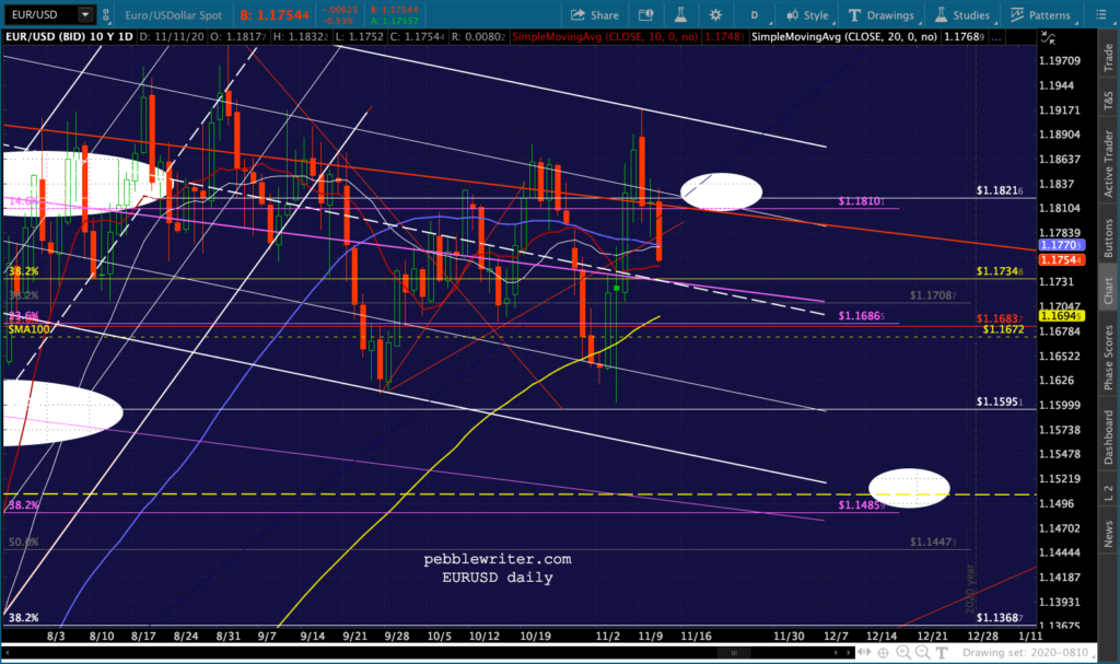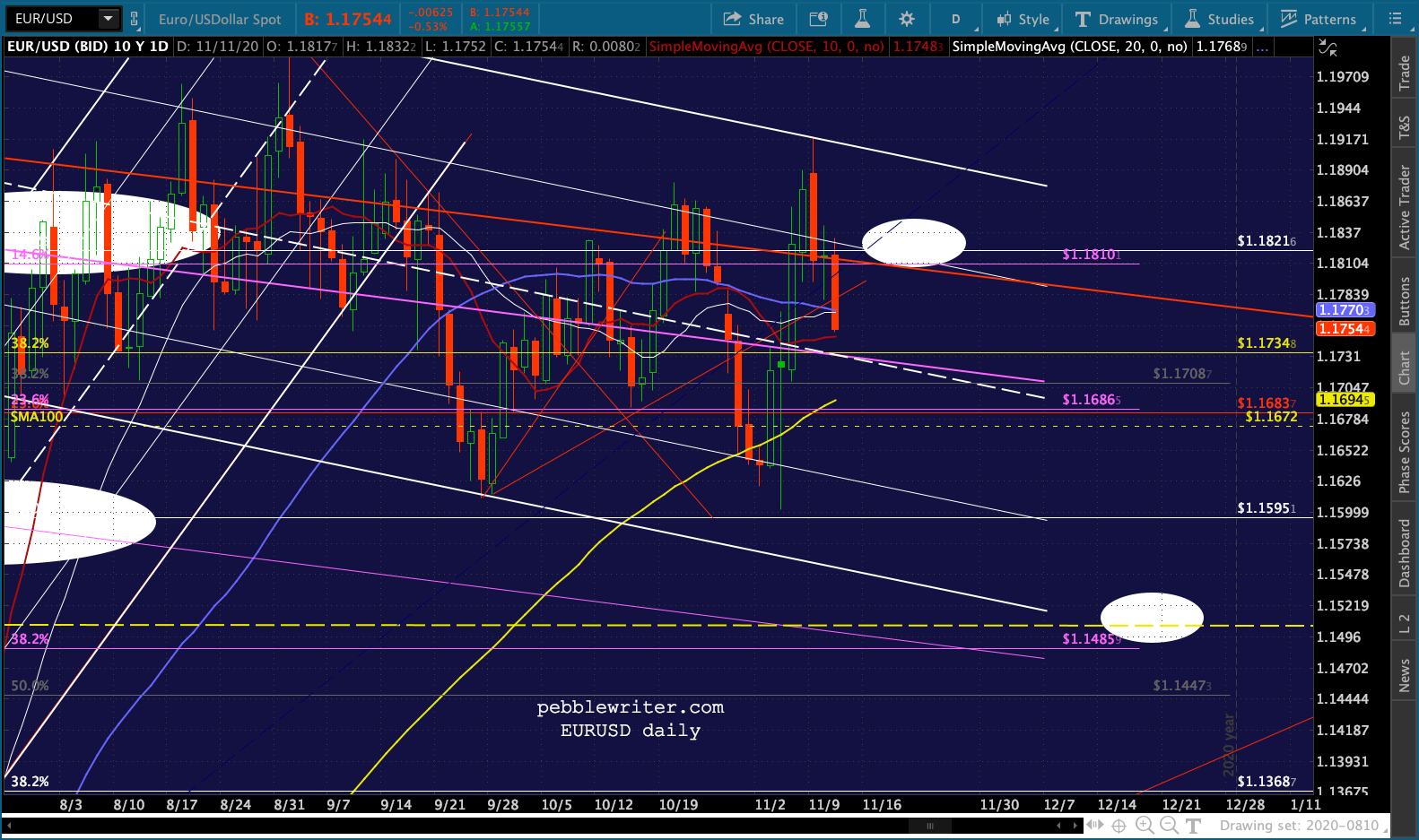 USDJPY is threatening a bullish 10/20 cross and is nearing the top of its falling purple channel…