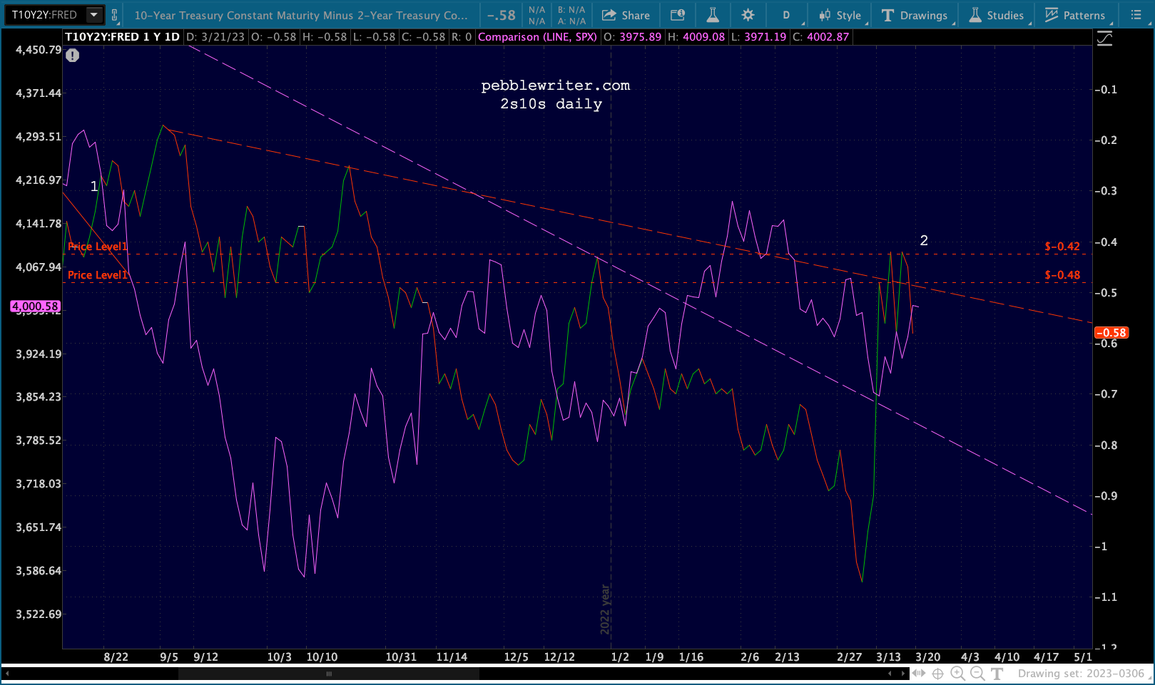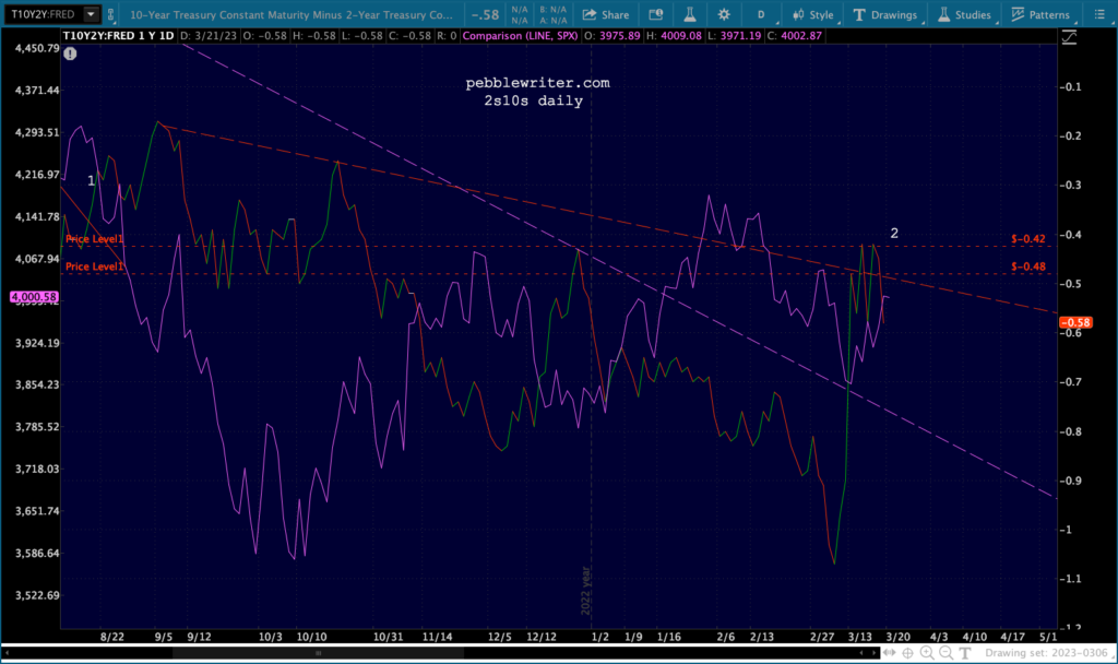 …which has managed to avoid a push above 2s10s -42 bps for another day.