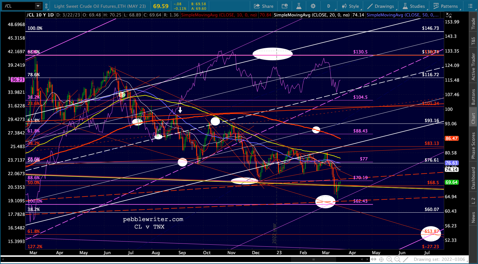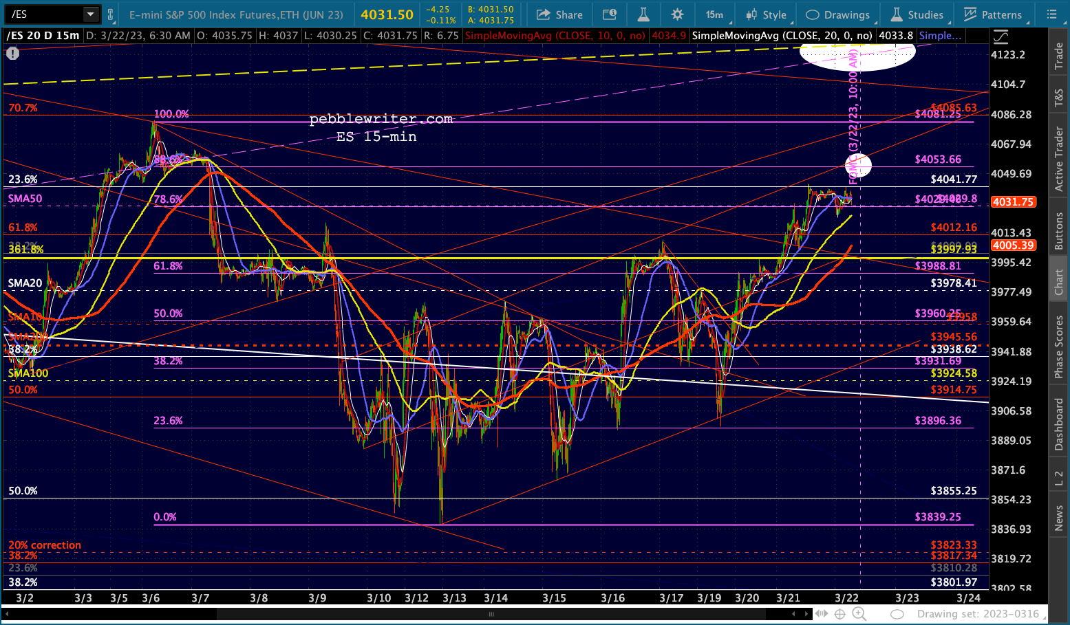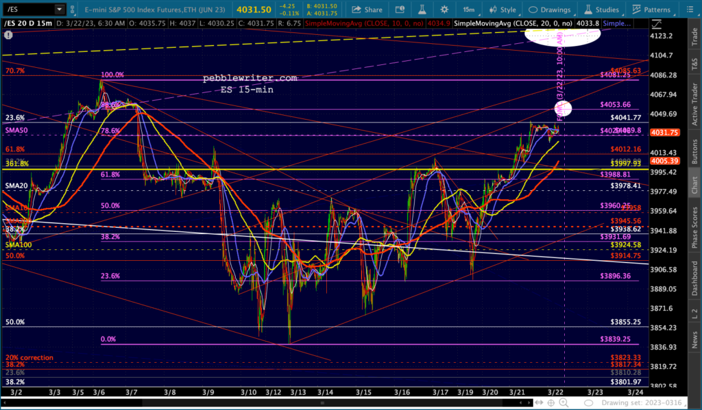 The ES equivalent shows it has broken above that same TL and is resting just above the .786 Fib and below the .886 Fib.
