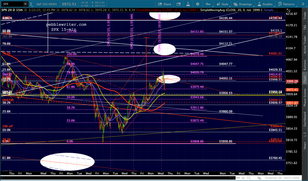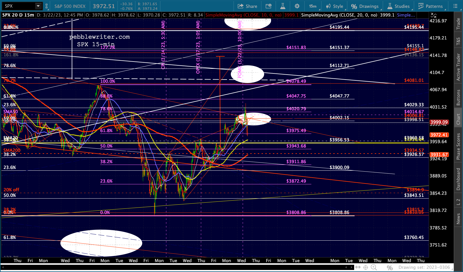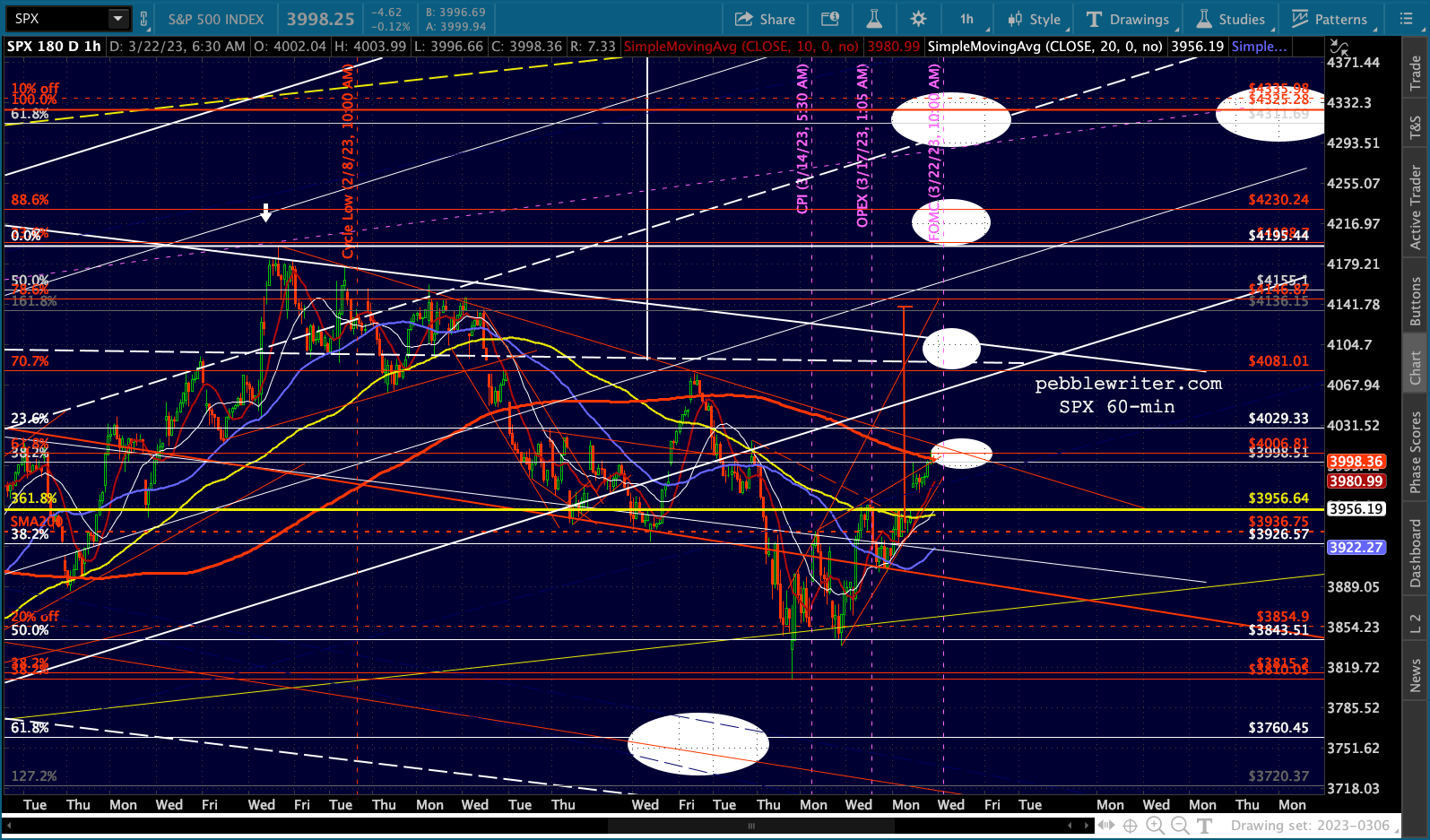 Not much has changed overnight. SPX reached our 4000 target yesterday. Note that it’s also in line with a TL off the Feb 2 highs.