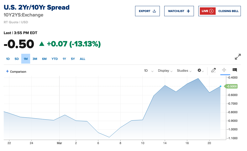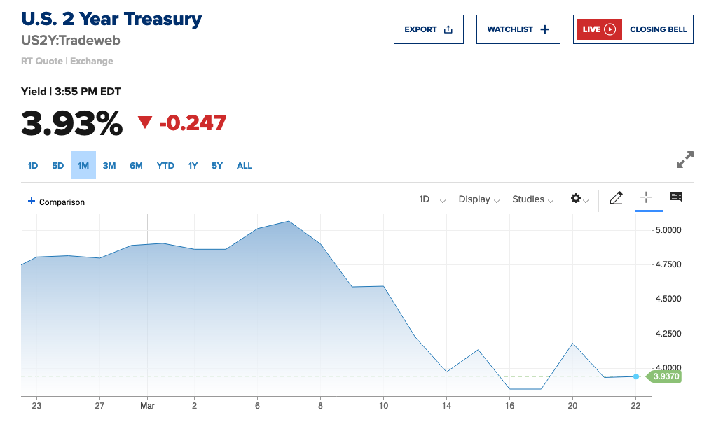 Our own research indicates that this is true. Gas prices, which are very highly correlated with CPI, are slated to fall 18.6% YoY in March. The last time the YoY delta hit this level was in Nov 2021 when CPI registered 1.17%.