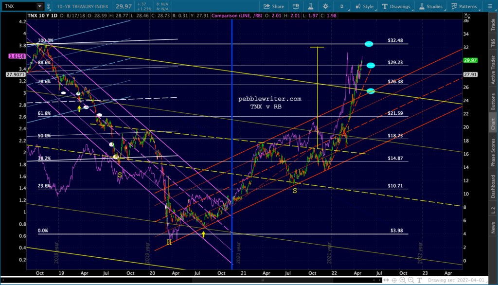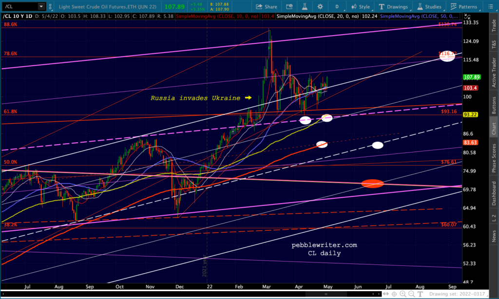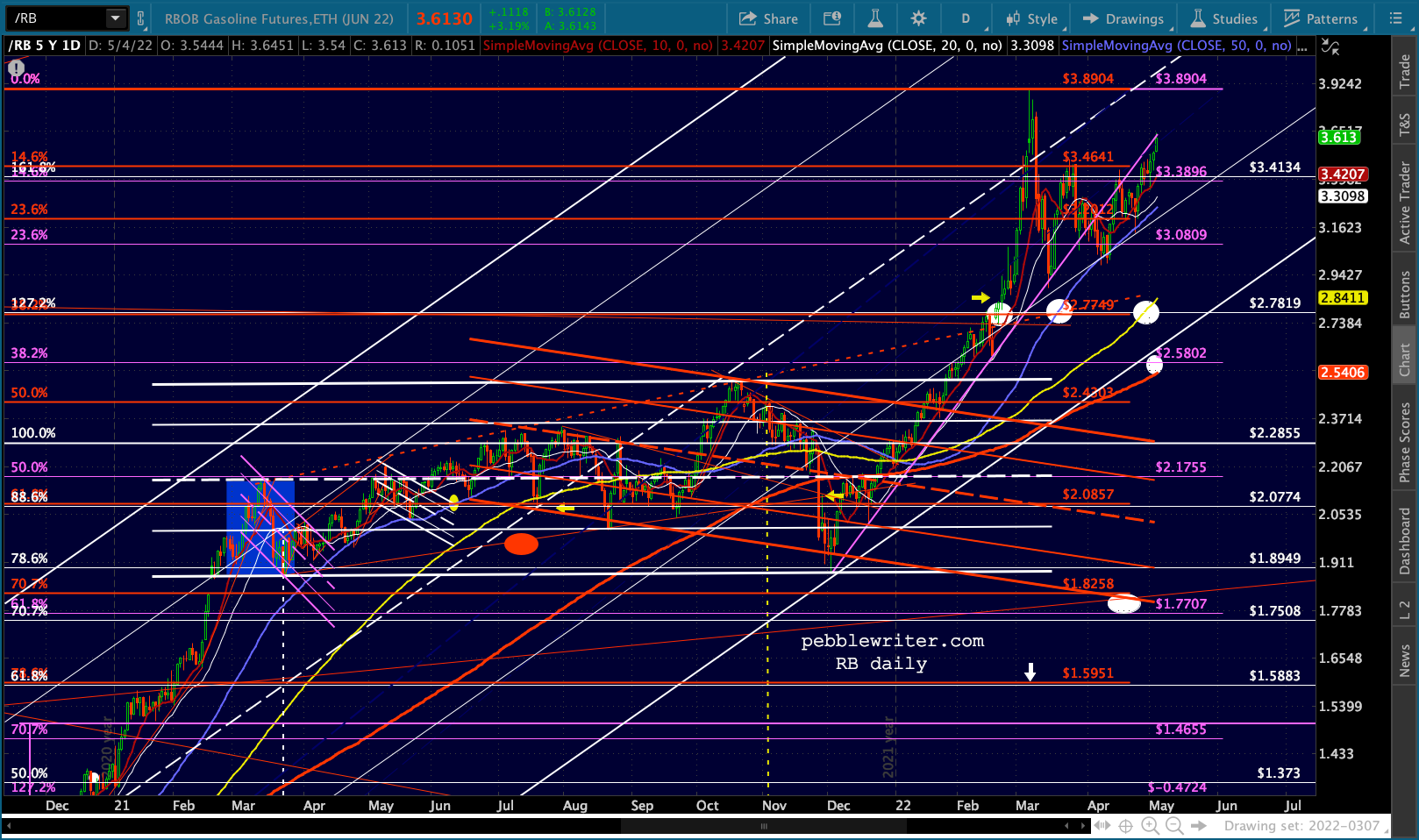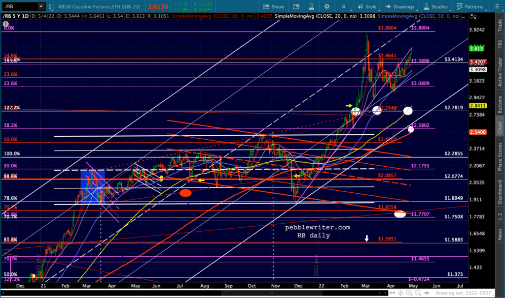 Saw an interesting news flash this morning that CIA director Bill Burns recently made an unscheduled trip to Saudi Arabia to meet with Crown Prince MBS – presumably to mend ties but obviously to coax/strong arm MBS into lowering oil prices. From the looks of the CL and RB charts, he was not successful.