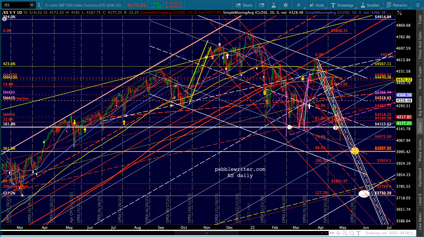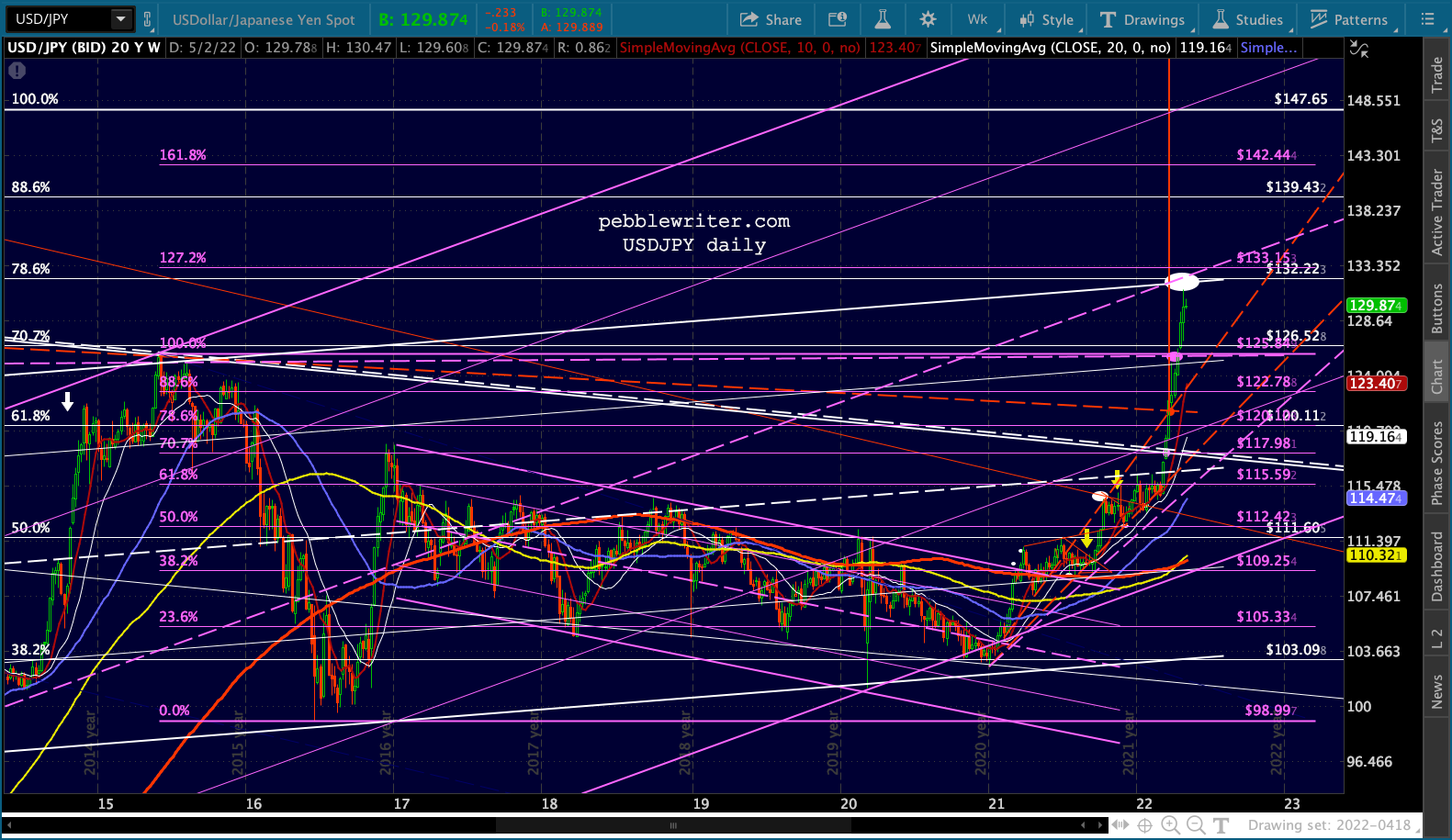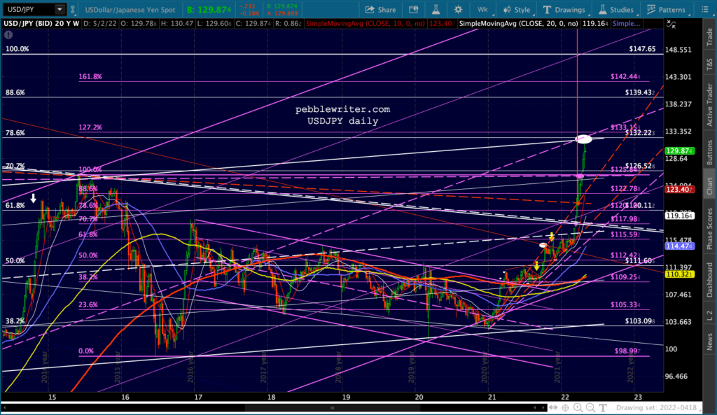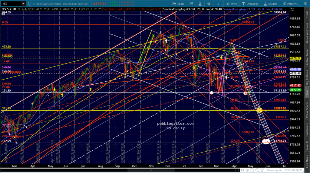 The equity picture remains unchanged, with scads of downside targets beginning with a backtest of the 3.618 extension at ES 3997 and SPX 3956.