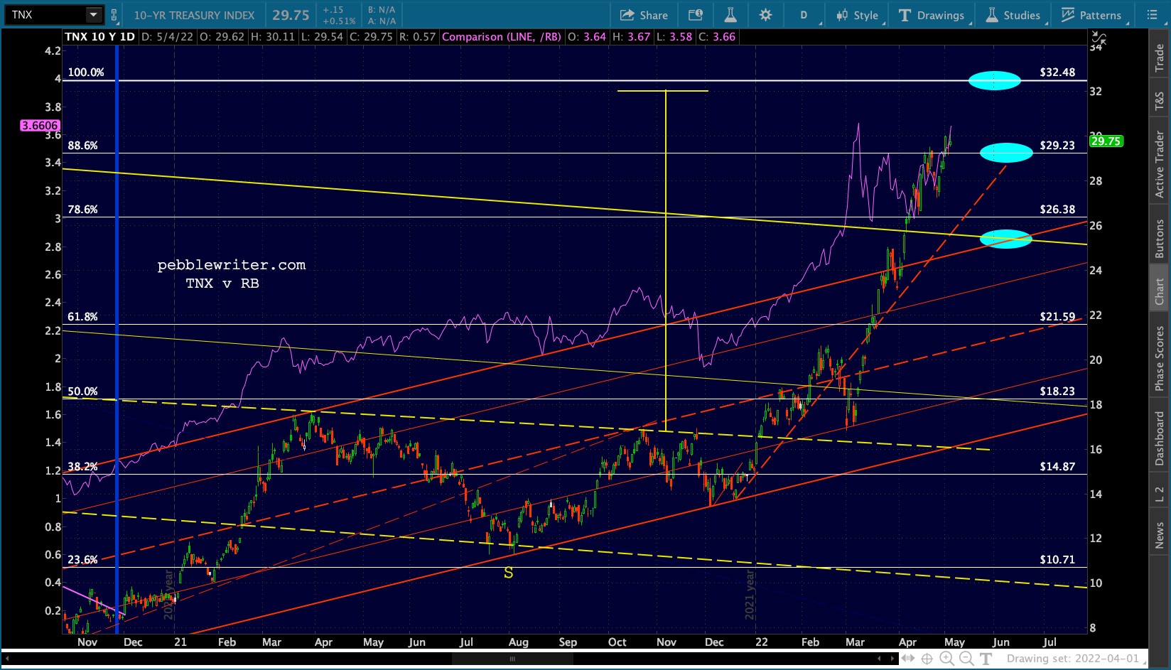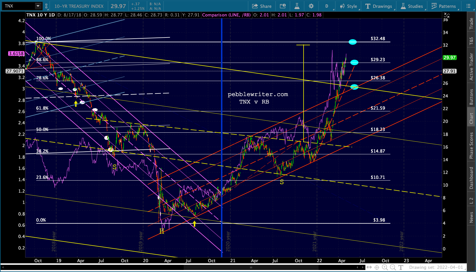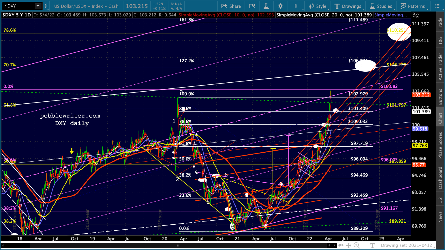 The equity picture remains unchanged, with scads of downside targets beginning with a backtest of the 3.618 extension at ES 3997 and SPX 3956.
