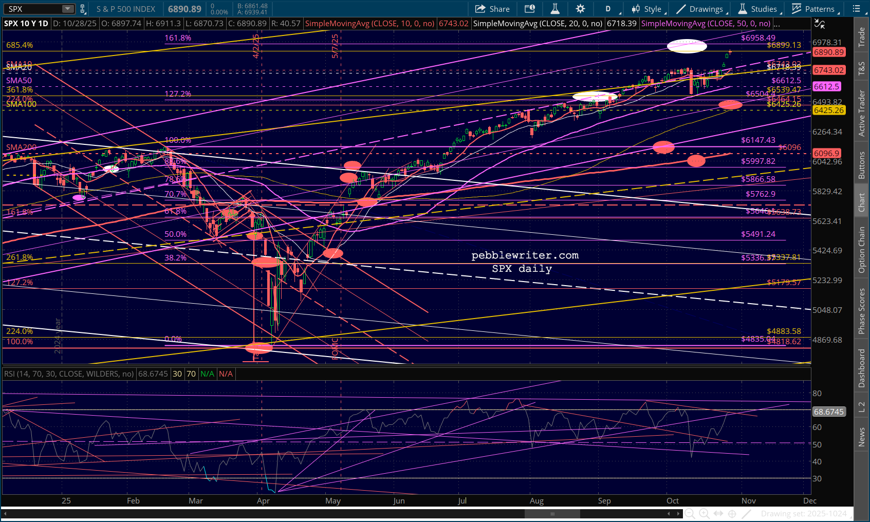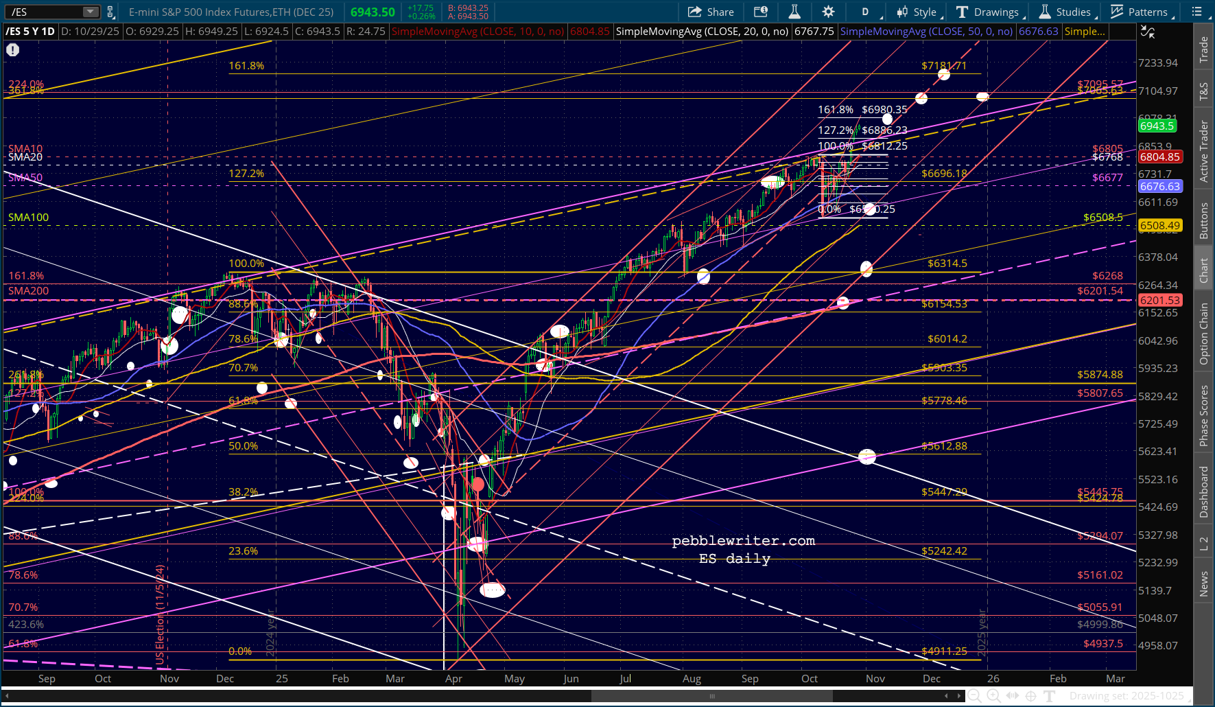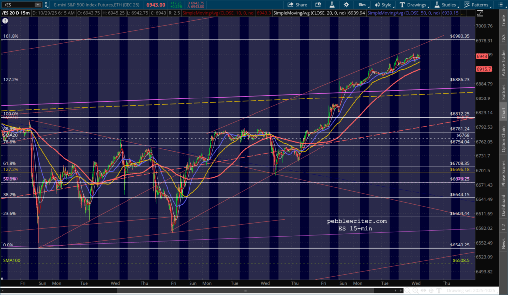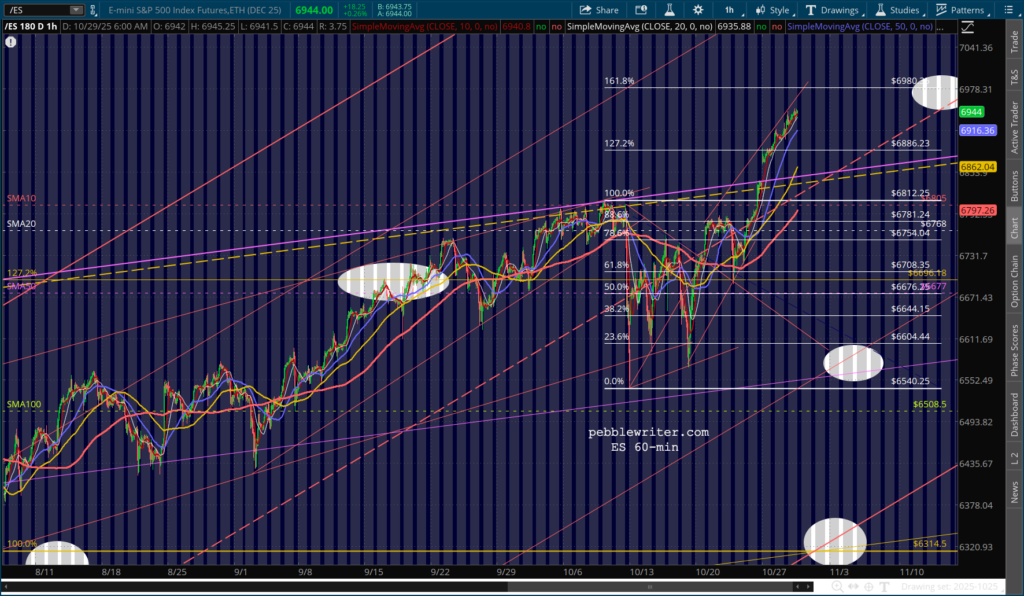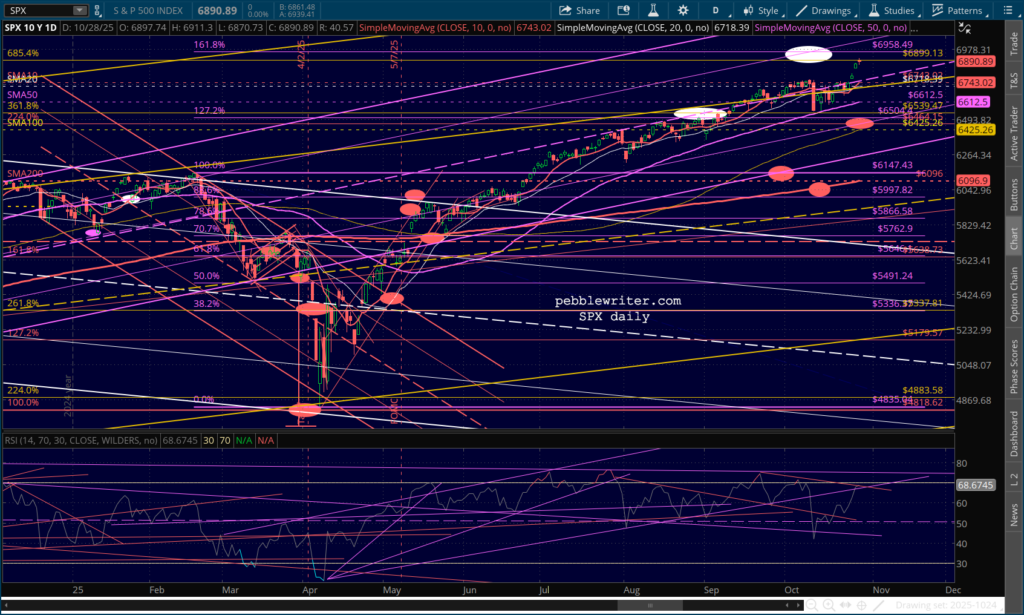 All this isn’t to say that this volatility measure will send stocks plunging. But, it is happening at the same time that ES is reaching its 1.618 at 6980 and SPX is reaching its purple 1.618 at 6958.