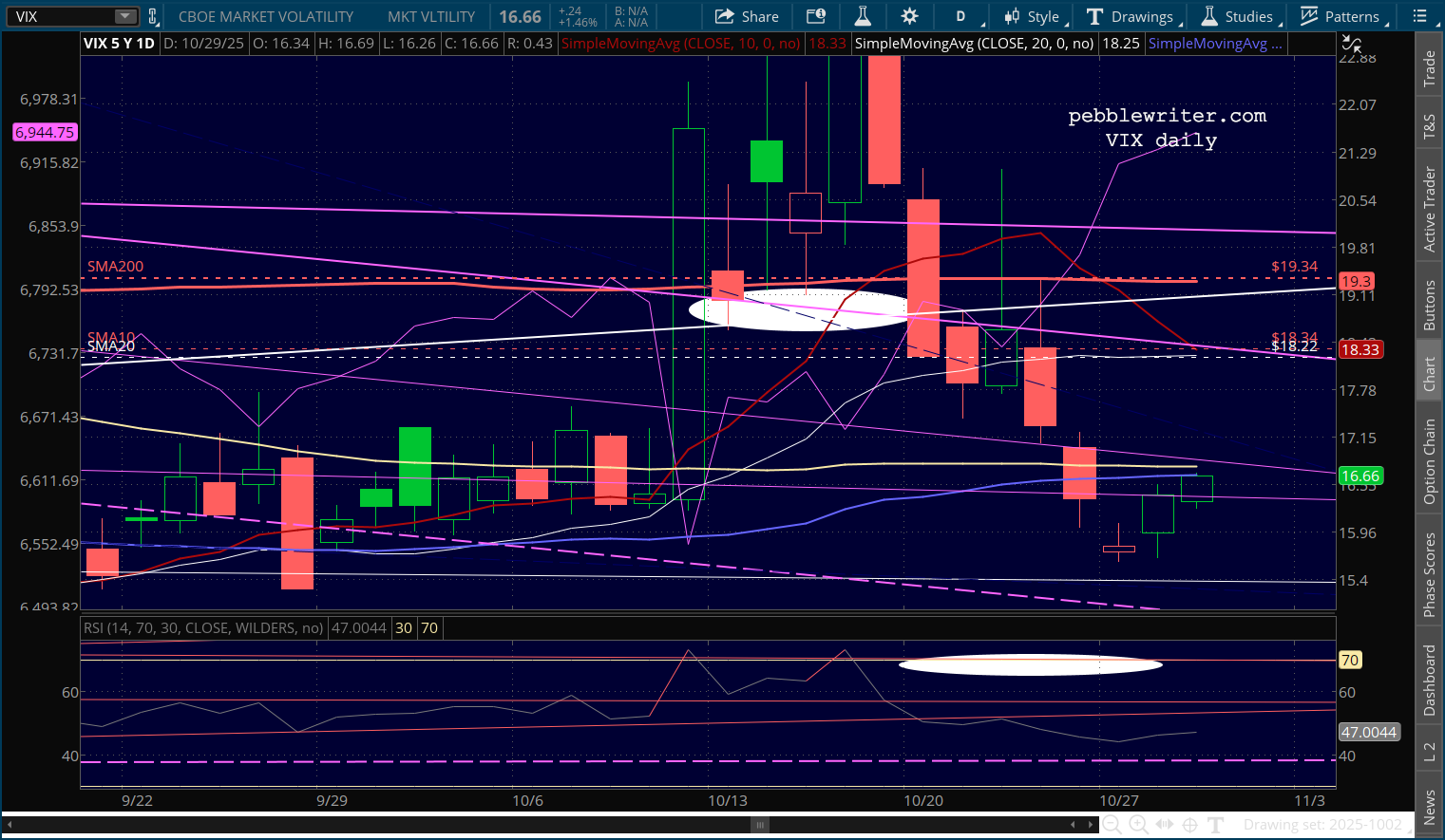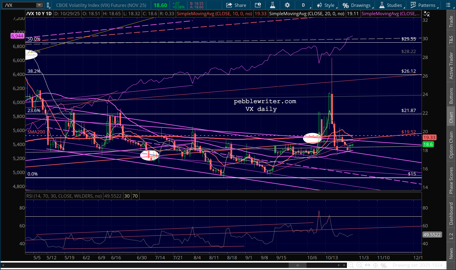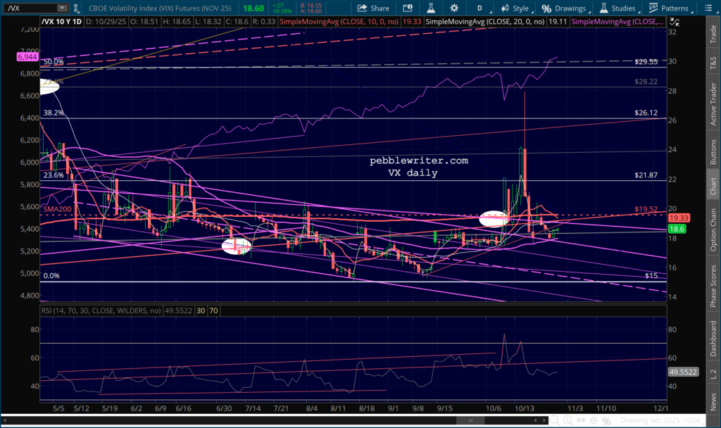 …it’s significant that VX has done a pretty good job of holding its SMA50 and remained broken out from that falling purple channel that dates back to early May.