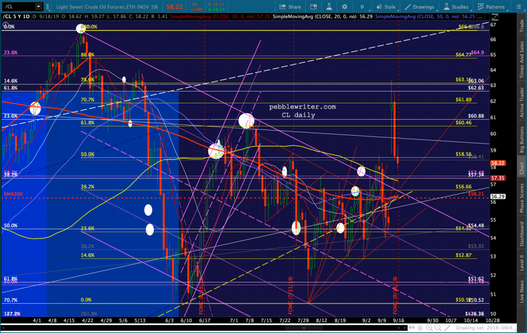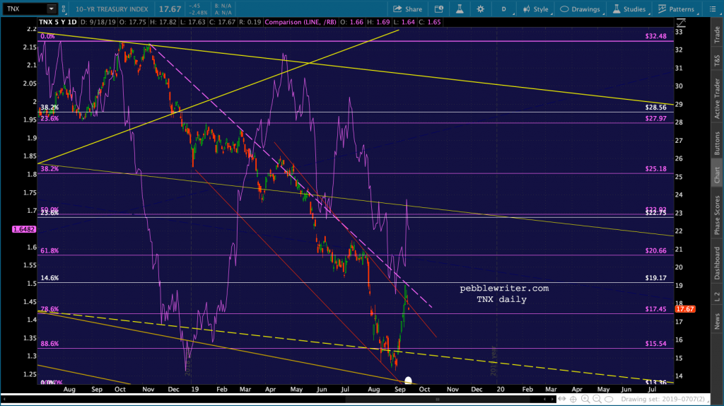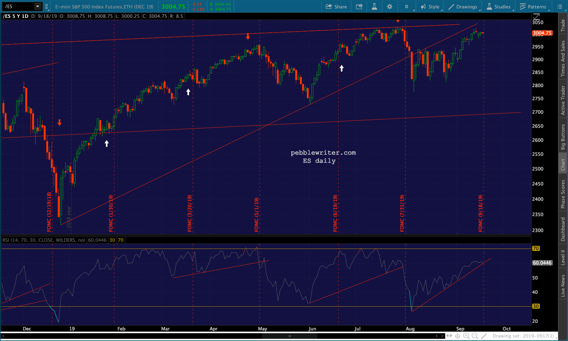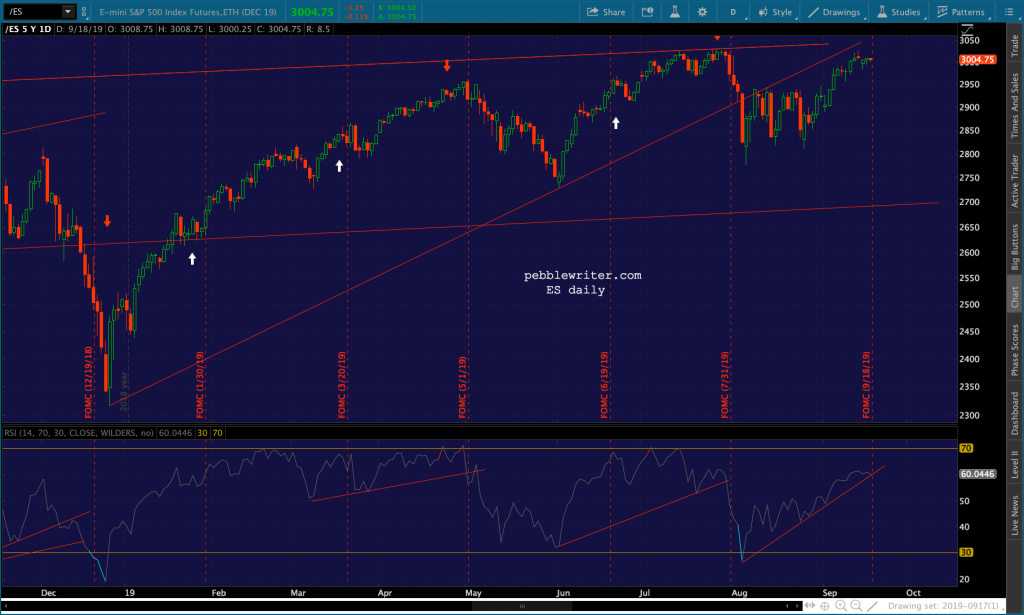 It’s safe to say that the market would tank if the FOMC didn’t cut today. It might also tank if they cut 25 bps but the comments reflected a lack of consensus and had a less than dovish tilt. It might even tank if the actions are overly dovish, reflecting more fear about the state of the economy than we thought. About the only action that would likely be bullish for the market would be a 25 bps cut now, new QE – ostensibly to cover the repo fiasco, and somewhat dovish comments along the lines of there being two more cuts likely.