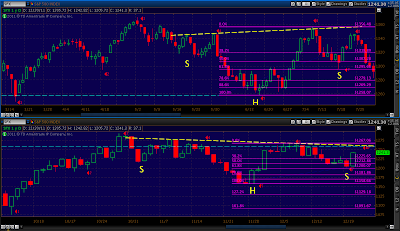 At 1242, we achieved a respectable .618 retrace of the recent decline — which could be all we get. But, in July the retrace was 84%; and we could get as high as 1260 without completing the inverse head & shoulder pattern. The .786 retrace would be 1253 and the .886 would be 1259.
