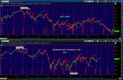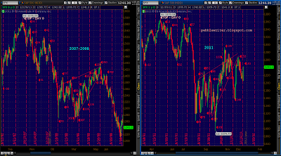 And, here’s the analog that started it all — 2011=2007/8. This one first came to my attention in May, although it was early June before I started charting it. There have been some divergences, for sure, but the similarities are spooky.