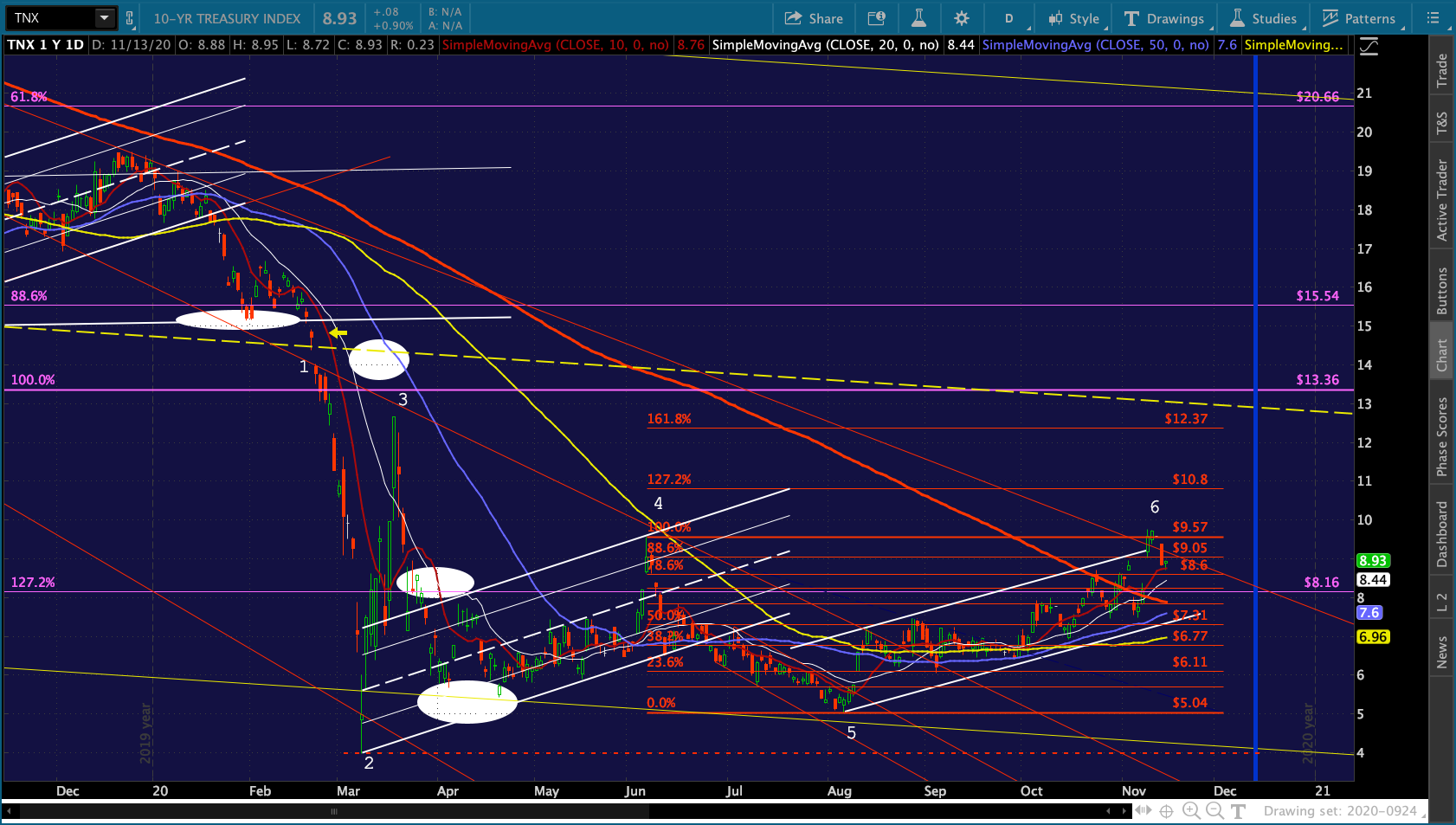 The correlations between DXY and TNX have been much more consistent with the exception of Point 4, when DXY made a significant bottom as TNX was peaking.