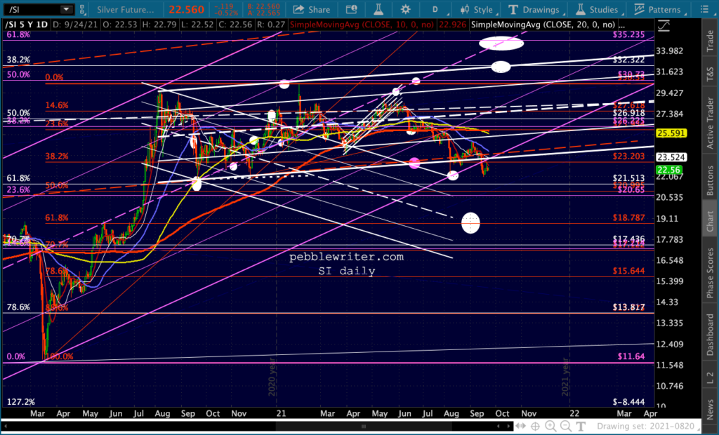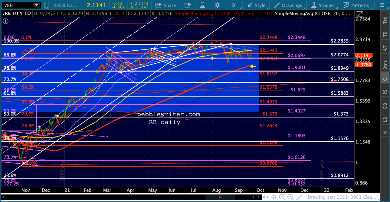 And, GC’s rising purple channel has definitely broken down – though we wait to see whether the backtests mentioned above (not to mention the IH&S backtest) will hold.